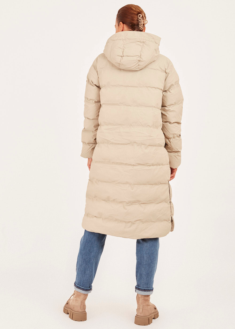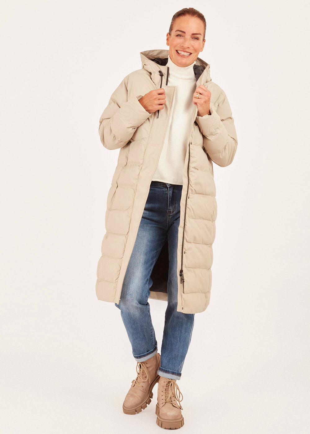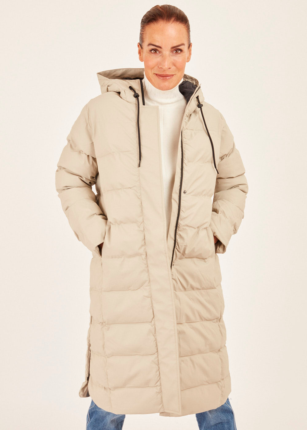Dieser moderne Mantel vereint Funktionalität und Stil auf elegante Weise. Das auffälligste Merkmal sind die seitlichen Reißverschlüsse, die nicht nur ein modisches Statement setzen, sondern auch praktisch sind. Dank dieser seitlichen Reißverschlüsse kannst du den Mantel auf vielfältige Weisen tragen. Lasse die Reißverschlüsse geschlossen, um sich vor eisigem Wind zu schützen, oder öffnen Sie sie leicht, um eine bequeme Passform zu gewährleisten und gleichzeitig eine lässige Note zu verleihen. Die Zweifachöffnung mit dem Zwei-Wege-Reißverschluss ermöglicht es dir auch, den Mantel von unten zu öffnen, was besonders praktisch ist, wenn du in deinem Auto oder Fahrrad bewegen und Bewegungsfreiheit benötigst. Der Steppmantel ist nicht nur funktional, sondern auch ein echter Blickfang. Das gesteppte Design verleiht ihm eine zeitlose Eleganz, während die seitlichen Reißverschlüsse einen modernen Twist hinzufügen. Das hochwertige Material hält dich warm und trocken, selbst bei den widrigsten Wetterbedingungen.