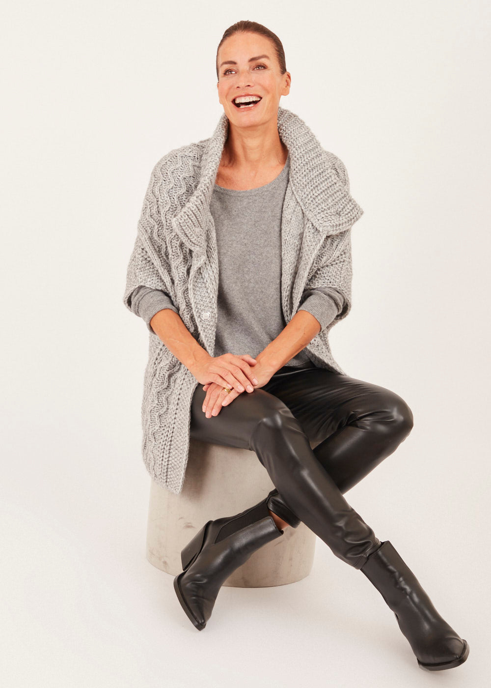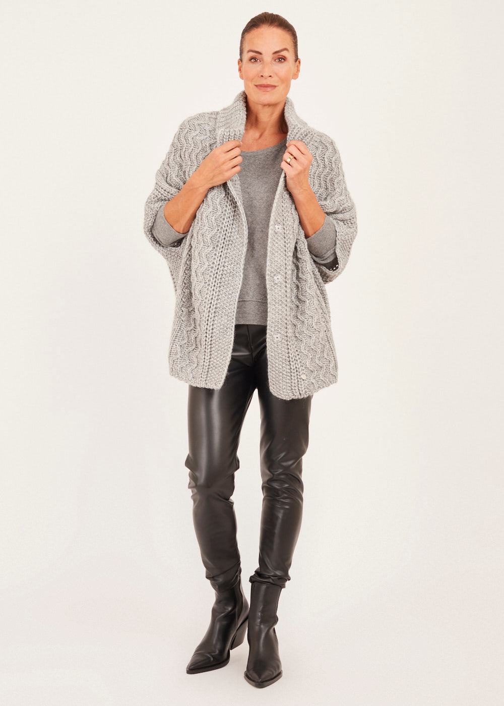 Unser geliebtes Strickcape mit kurzen Armen ist der perfekte Begleiter zum drüber werfen. Er ist mit Knöpfen verschließbar und lässt sich daher auch perfekt geschlossen tragen. Durch sein Unifarbenes Design lässt er sich wunderbar kombinieren und macht dabei noch eine richtig gute Figur. Mit diesem extravaganten Strickstück sind wir für alle Fashion-Fälle gewappnet.