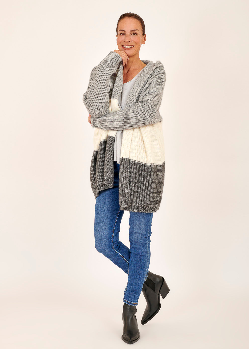Die charakteristischen Blockstreifen dieses Cardigans fügen einen Hauch von Raffinesse und Persönlichkeit hinzu. Die Kombination aus verschiedenen Farben schafft ein harmonisches Gesamtbild, das sowohl modern als auch zeitlos ist. Für einen lebhaften Look - dieser Cardigan ist ein echter Blickfang.