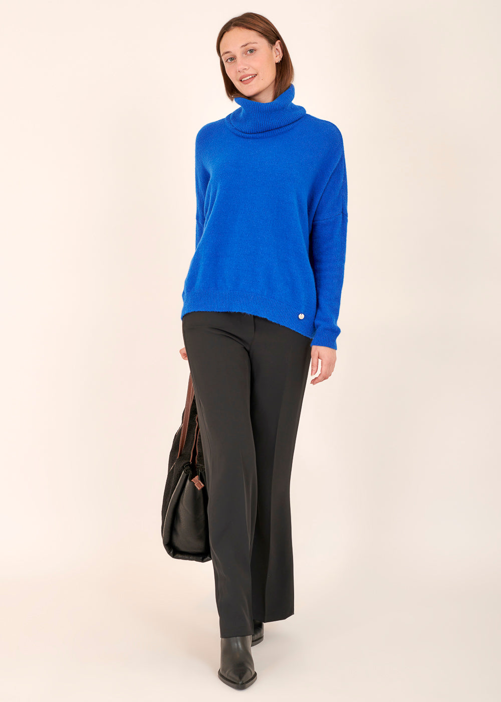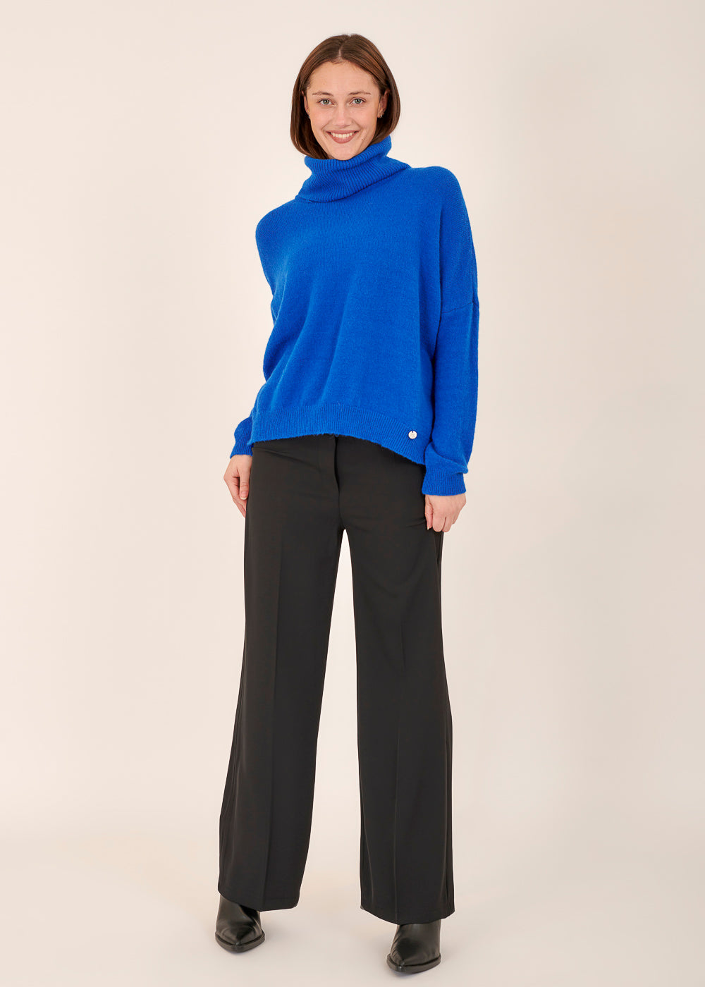 Der königlich blaue Rollkragenpullover ist nicht nur ein Kleidungsstück, sondern ein Statement. Dieser Pullover verbindet klassische Eleganz mit außergewöhnlicher Wärme und Komfort und wird sicherlich zu deinem Lieblingsbegleiter für die kalten Jahreszeiten.Der Rollkragen des Pullovers kann hochgeklappt oder heruntergeklappt getragen werden, um sich den Temperaturbedingungen anzupassen. Der Pullover hält dich selbst an den kältesten Tagen warm, ohne dabei sperrig zu wirken. Die weiche und dennoch strapazierfähige Strickware sorgt für ein angenehmes Tragegefühl.