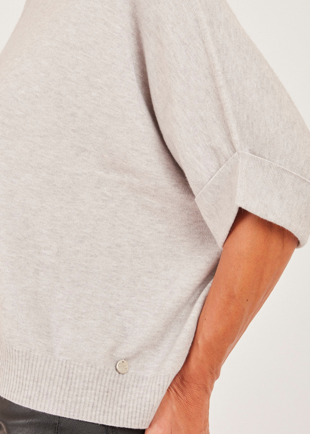 Vervollständigt dein Outfit und darf in keiner Garderobe fehlen: Dank diesem Oversize-Pullover kannst du unterschiedlichste, modische Outfits kreieren. Der Feinstrick ist herrlich weich und trägt sich angenehm auf der Haut. Smarte Design-Details, wie etwa die umgeschlagenen Ärmel und das Metallplättchen, runden den Gesamteindruck ab.