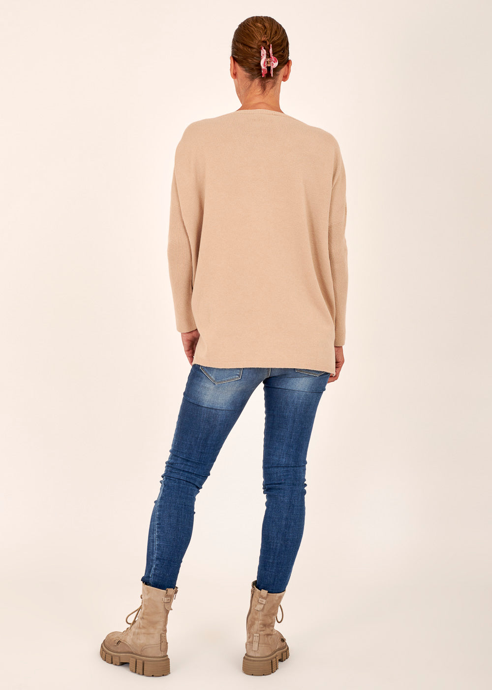 Das Model trägt bei einer Körpergröße von 179 cm die Konfektionsgröße Onesize.