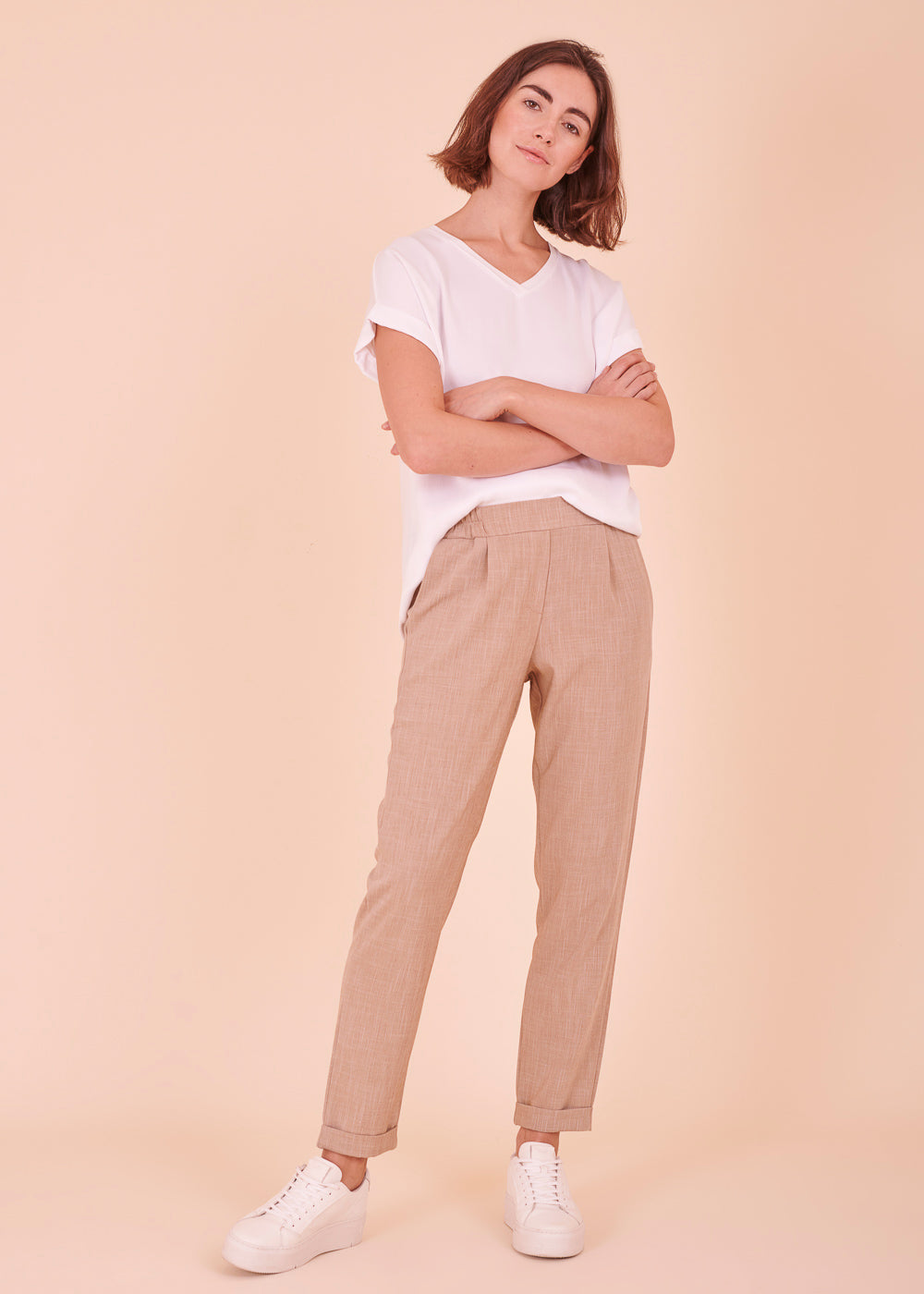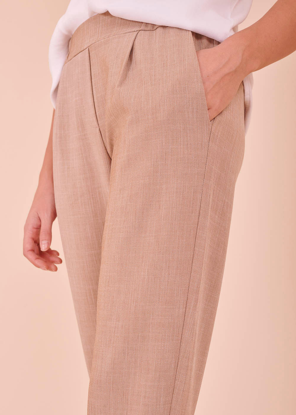 Tolle Bundfaltenhose mit geradem Bein. Die Hose sitzt besonders lässig durch seinen Gummizug und hat seitliche Eingriffstaschen. Besonders toll in Kombination mit dem passenden Blazer und einer weißen Bluse. Einfach lässig und stylisch.