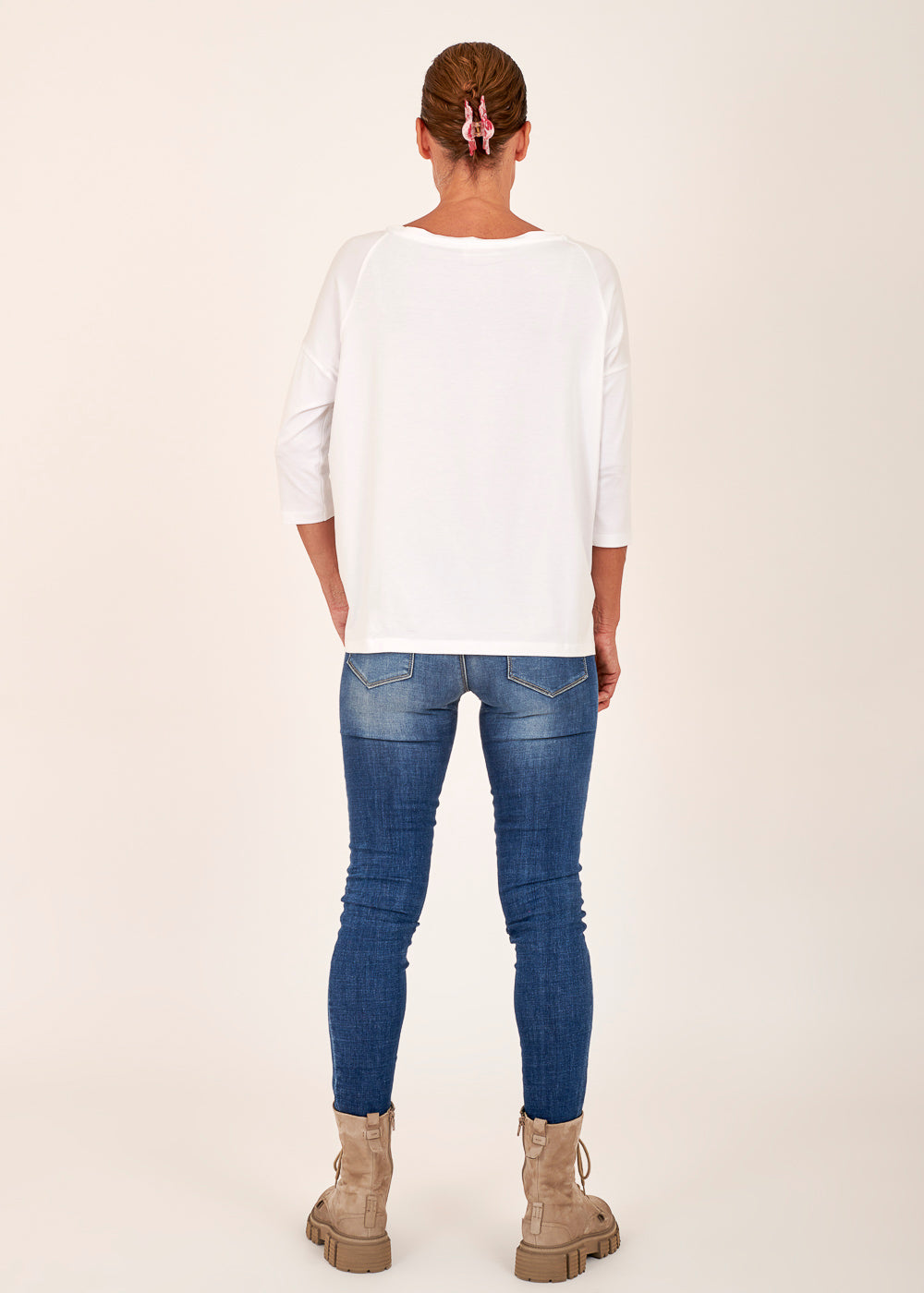 Das Model trägt bei einer Körpergröße von 179 cm die Konfektionsgröße I.