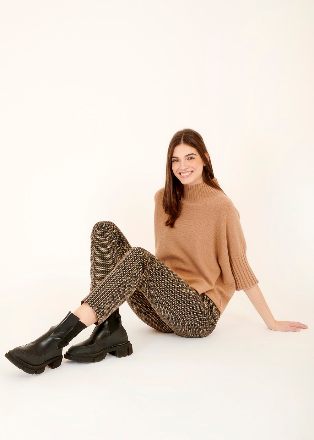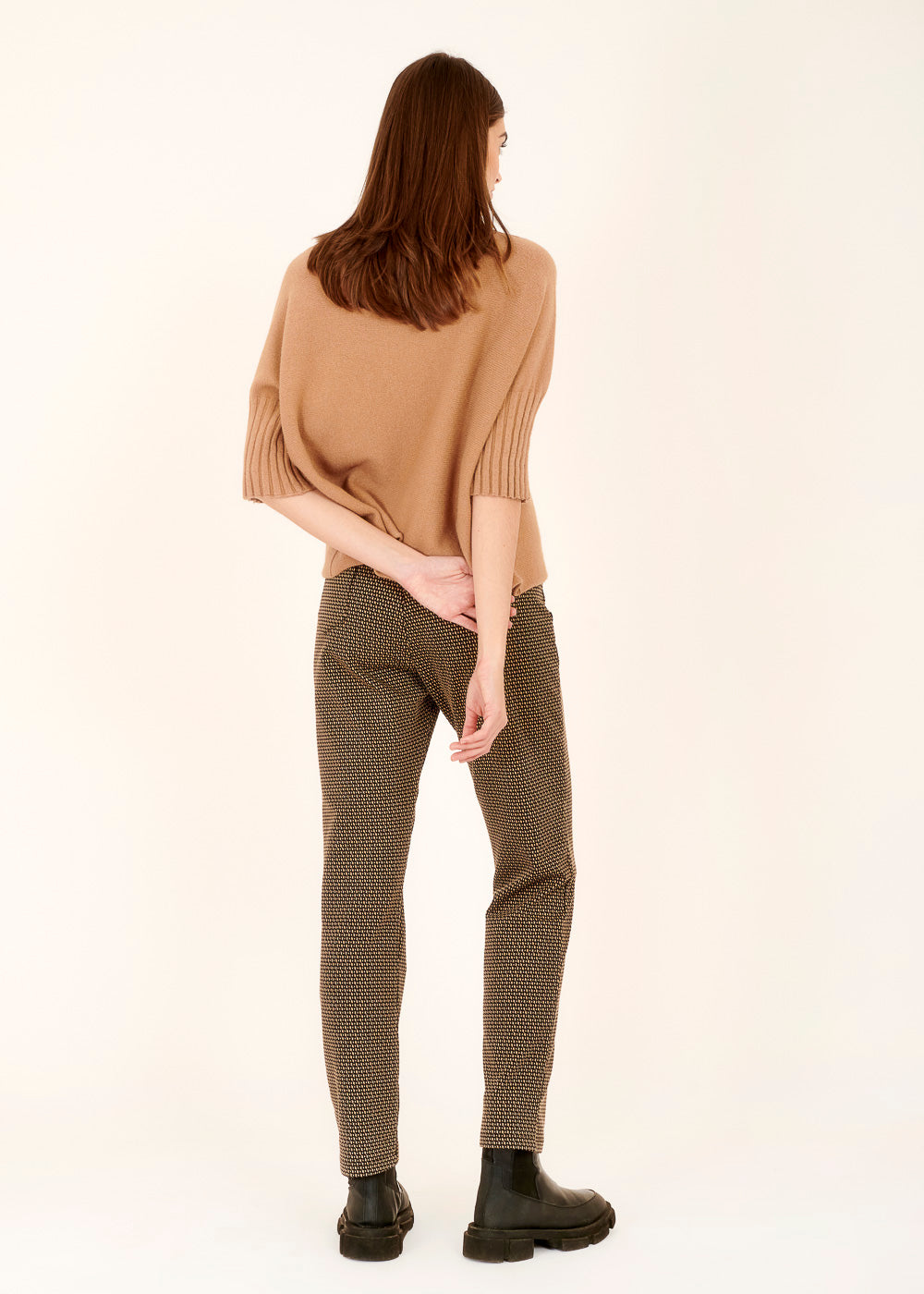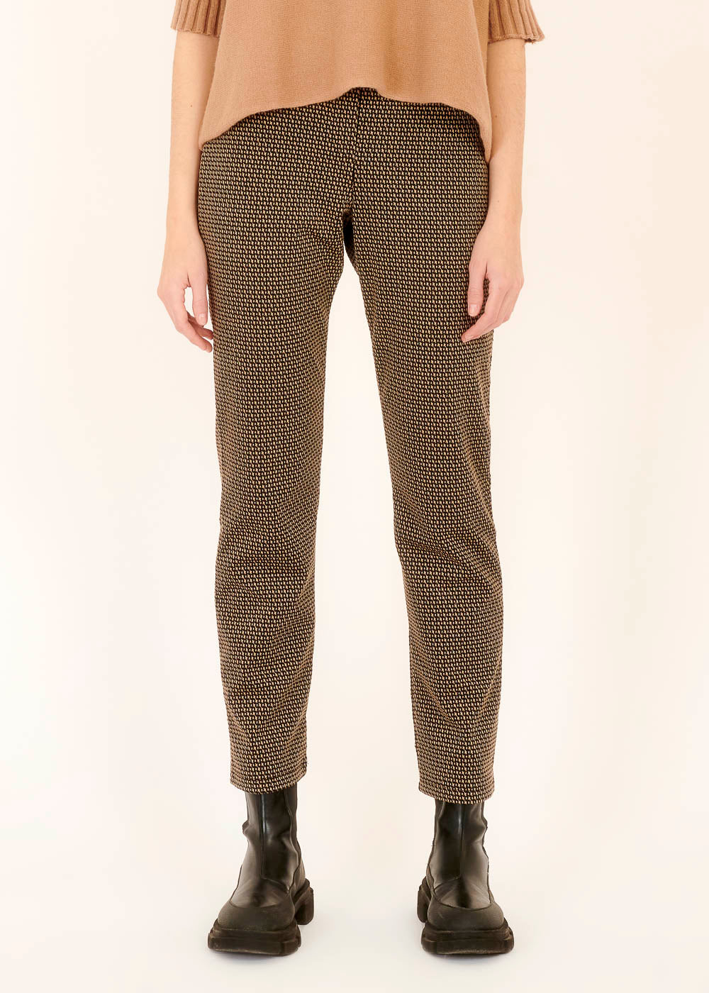 Tolle Jaquardhose mit geradem Bein. Die Hose sitzt besonders lässig durch seinen Gummizug und hat seitliche Eingriffstaschen. Besonders toll in Kombination mit dem passenden Blazer und einer weißen Bluse. Einfach lässig und stylisch.