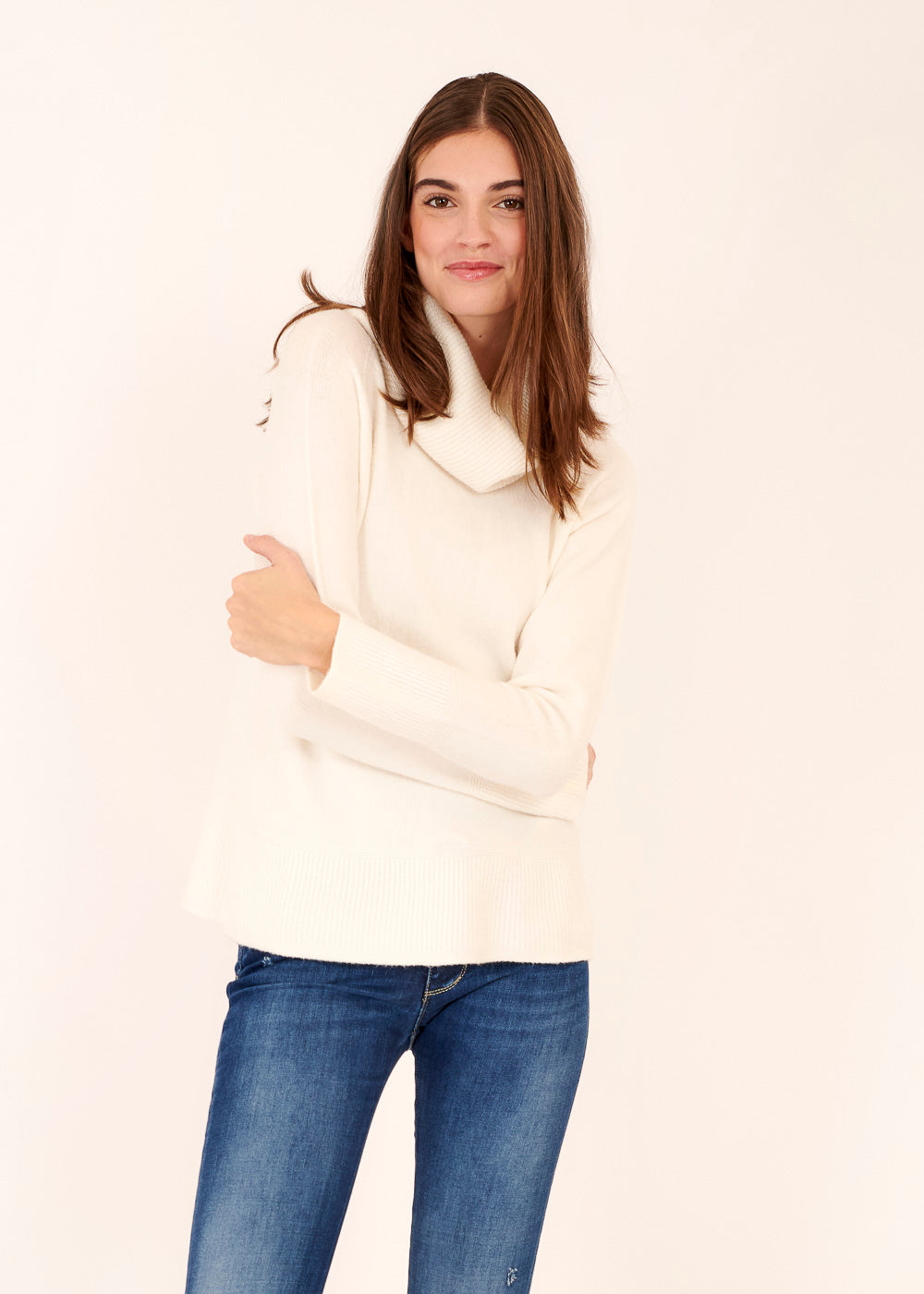 Unser weißer Schalkragenpullover bietet schlichte Eleganz und hervorragenden Tragekomfort. Hergestellt aus hochwertiger Viskosemix, zeichnet sich dieses Kleidungsstück durch seine zeitlose Ästhetik und vielseitige Verwendbarkeit aus.