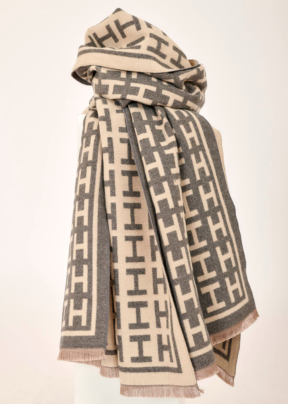 Ein besonderer Hingucker! Dieser besondere Schal setzt auf ein cooles H-Design. Er beinhaltet alle Trendfarben und ist daher zu vielen Outfits kombinierbar. Mit dem kuschelig weichen Schal kannst du dein Outfit ganz einfach aufwerten und hast gleichzeitig einen großartigen Begleiter für Reisen und kühlere Tage dabei.