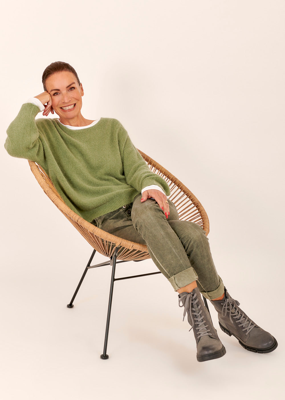 Das Model trägt bei einer Körpergröße von 179 cm die Konfektionsgröße I.
