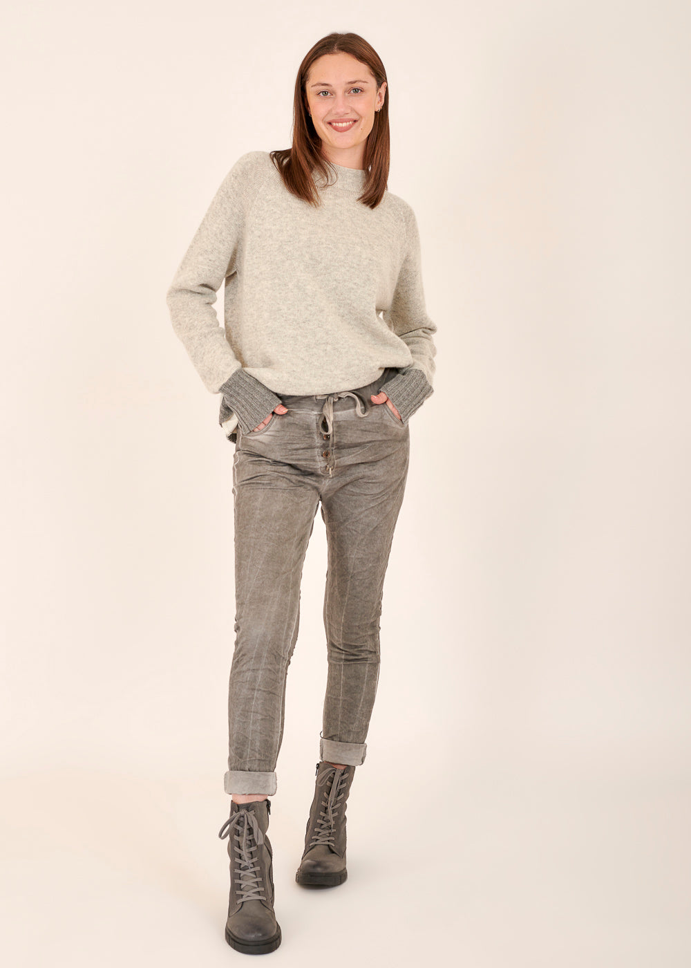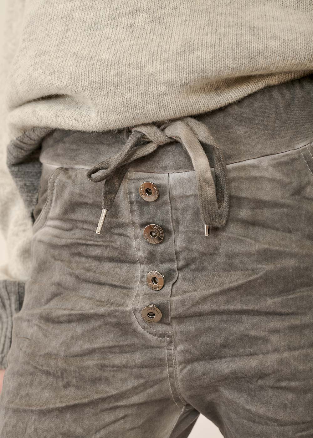 Unser Bestseller! Hose aus Viskose und Elasthan. Dadurch sitzt sie super bequem und lässt sich prima zu Allem kombinieren. Gummizug im Bund, Tunnelzug mit Band, seitliche Eingriffstaschen und Knopfleiste