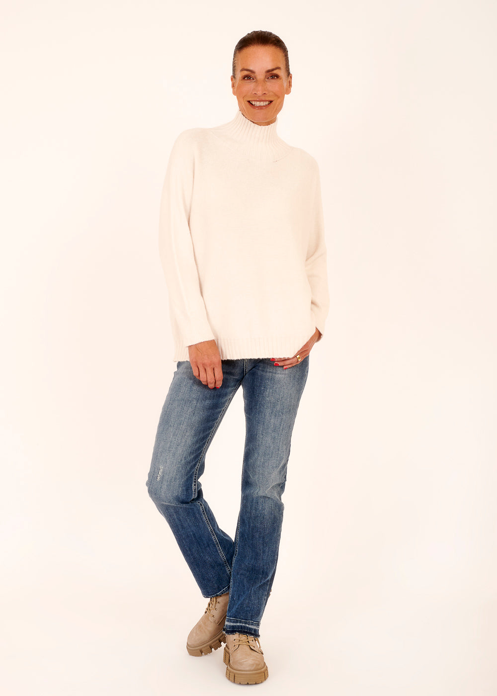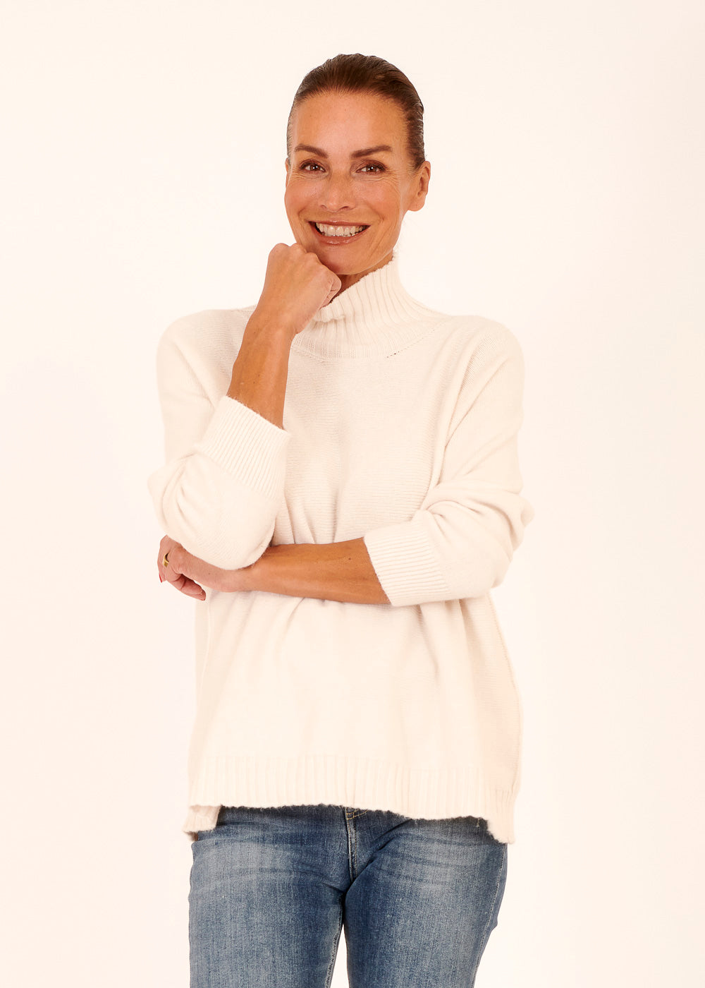 Unser kuschelig, lässige Pullover mit Turtleneck bietet das Beste aus beiden Welten - unschlagbare Gemütlichkeit und unverwechselbaren Stil. Das angenehme Material ist weich auf deiner Haut und der edle Panna Ton lässt sich wunderbar stylen. Egal, ob du im Büro, bei einem Treffen mit Freunden oder an einem gemütlichen Abend zu Hause tragen - dieser Pullover ist immer die richtige Wahl.