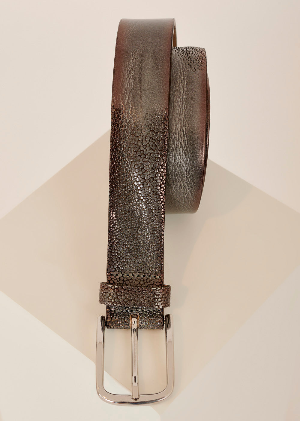Die Besonderheit dieses Gürtels liegt in der Prägung des Leders, sowie der hochwertig verarbeiteten Schnalle.