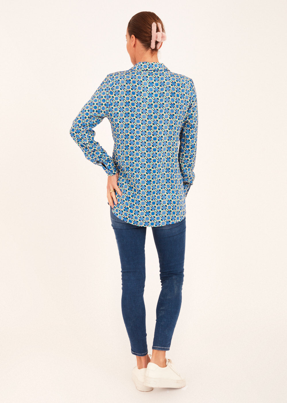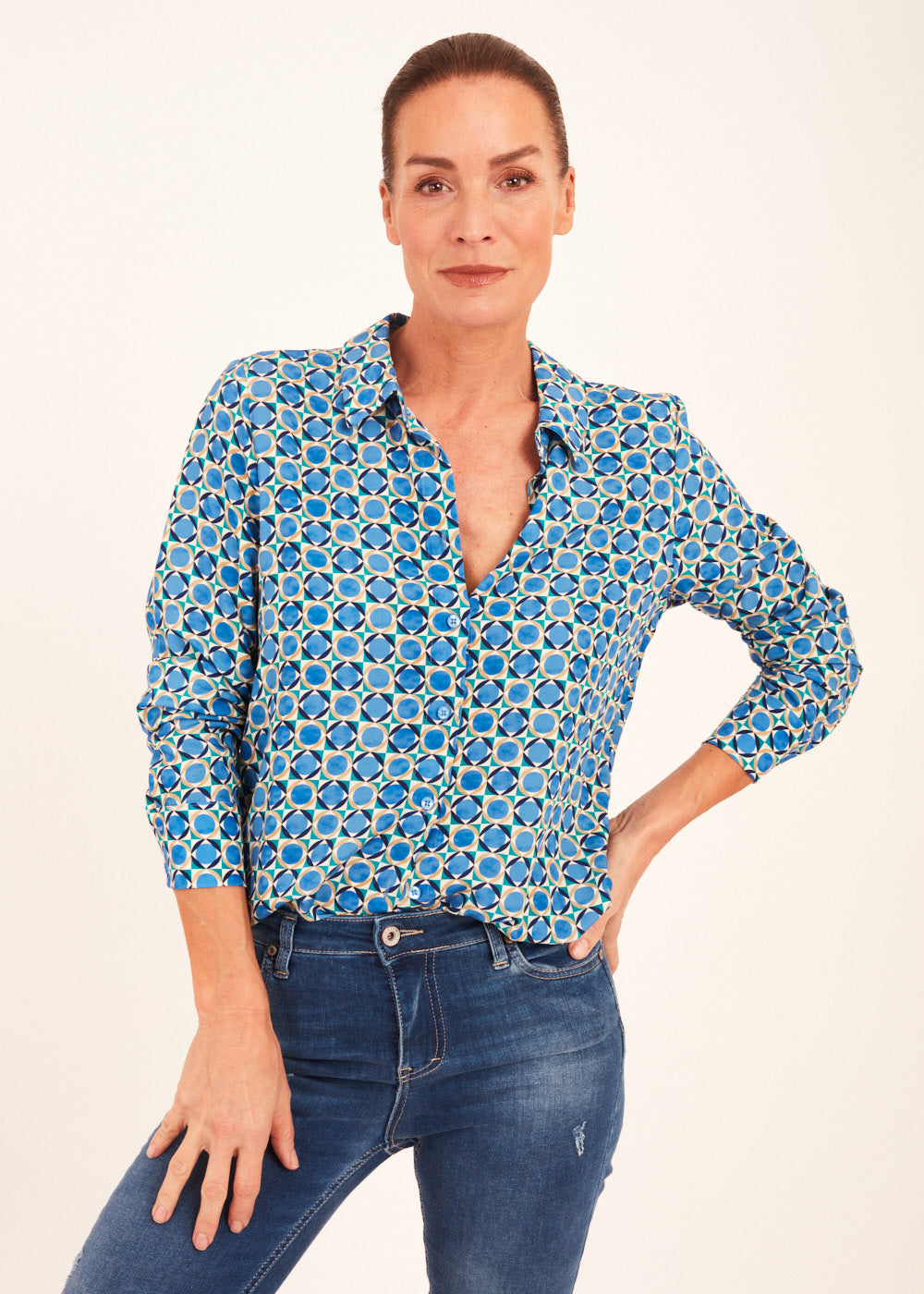 Mit dieser Hemdblusen-Druckbluse setzen Sie ein Statement in Sachen Stil und Individualität. Holen Sie sich das Beste aus beiden Welten – zeitlose Eleganz und moderne Raffinesse – mit unserer blauen Druckbluse.