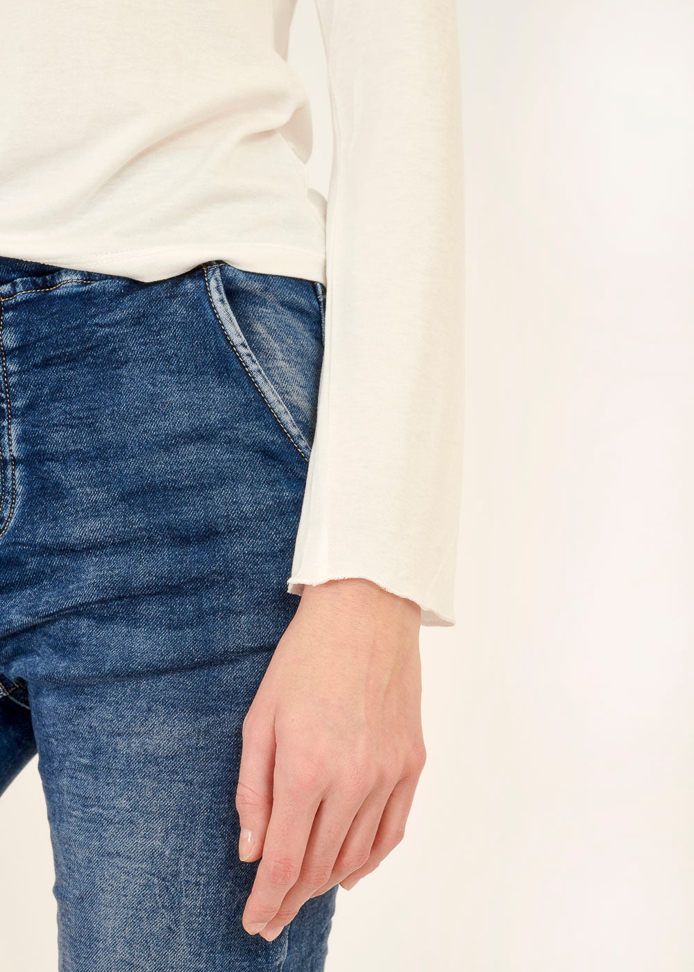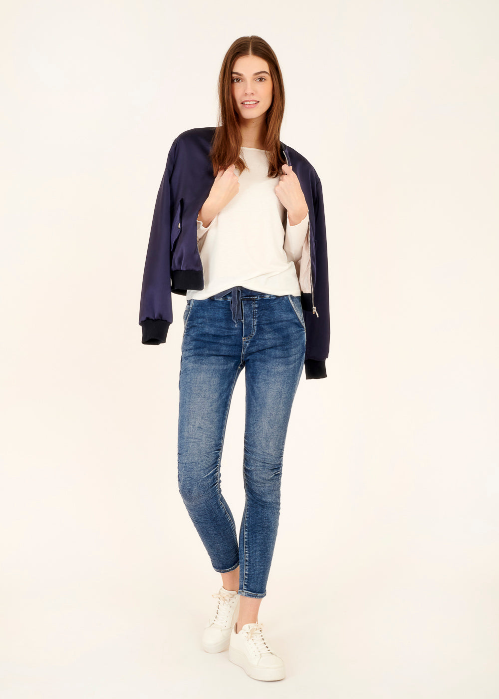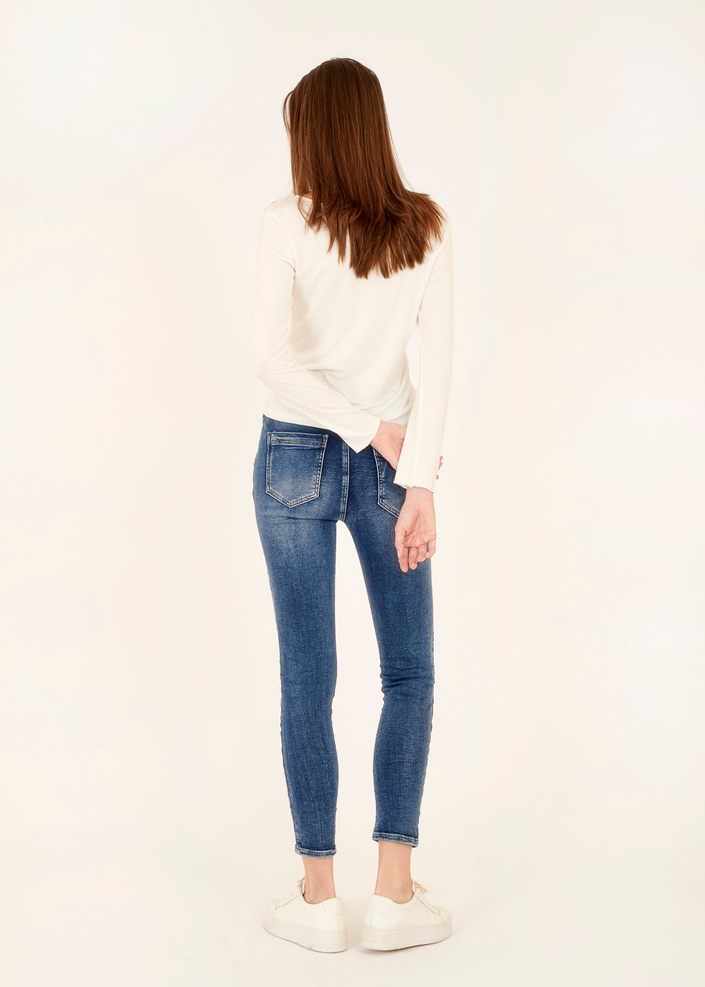 Das Model trägt bei einer Körpergröße von 179 cm die Konfektionsgröße S.