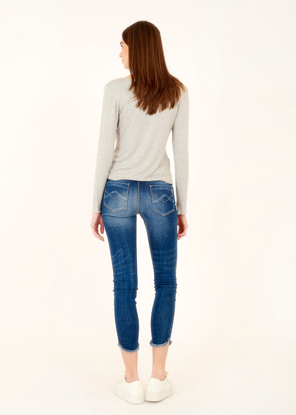 Das Model trägt bei einer Körpergröße von 179 cm die Konfektionsgröße S.