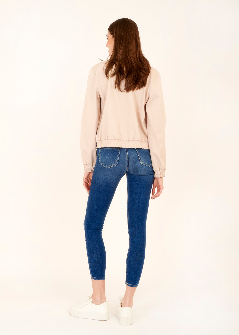 Der dezente Beigeton macht den Blouson vielseitig kombinierbar, während die Taschen nicht nur ein praktisches Detail sind, sondern auch einen coolen Akzent setzen. Die lockere Passform und das leichte Material machen ihn zum idealen Begleiter für jede Jahreszeit.
