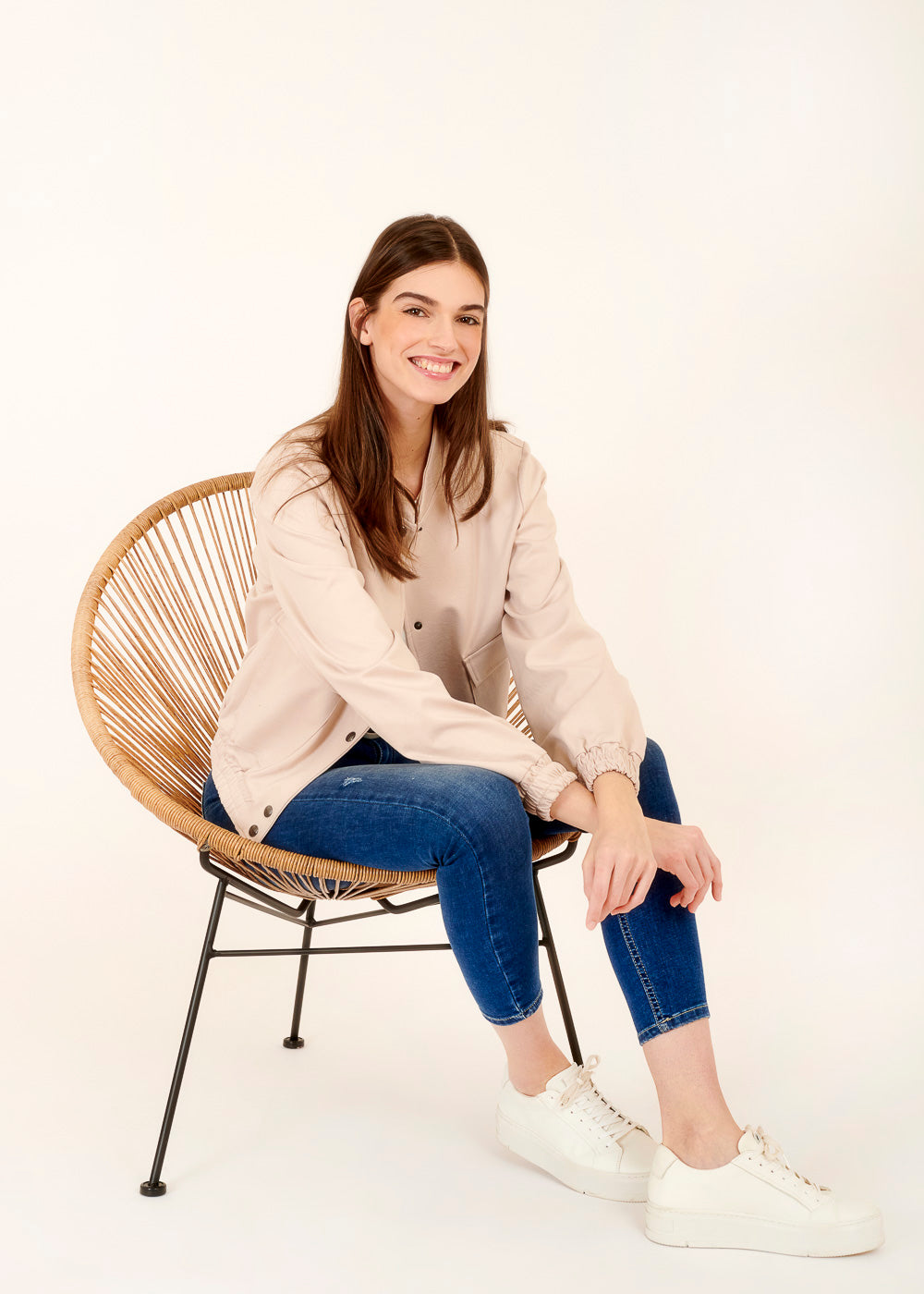Hol dir lässige Eleganz mit unserem beigen Blouson, komplett mit praktischen Taschen. Dieser zeitlose Klassiker verbindet Stil und Funktionalität auf perfekte Weise.