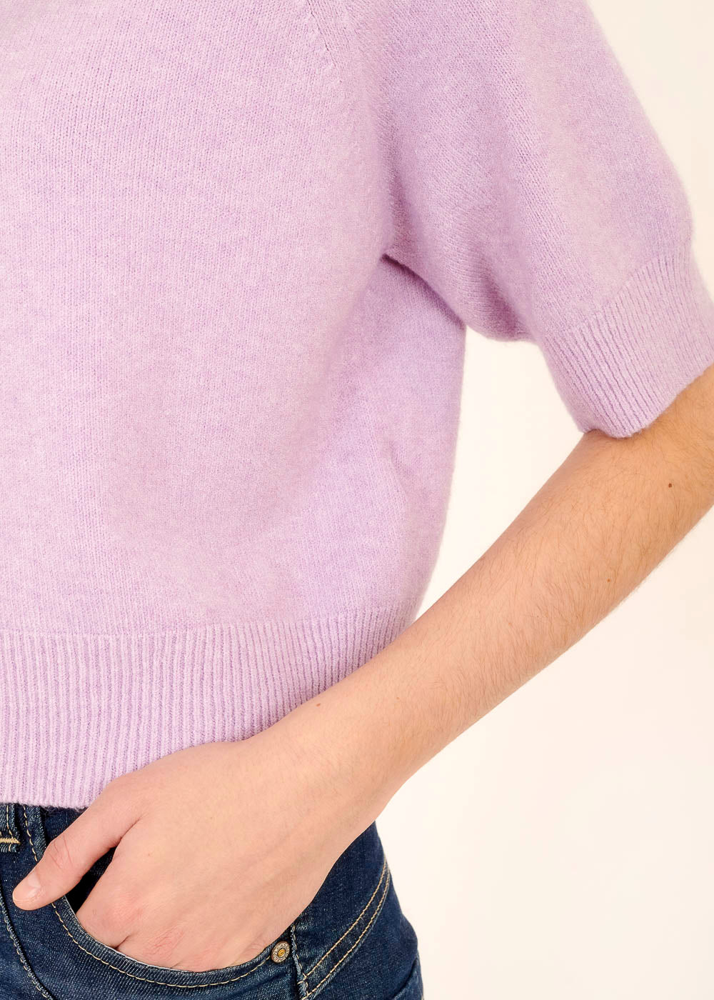 Kurz geschnittener Pullover mit kurzen Armen. Rippenbündchen an den Ärmeln und am Saum. Durch seine Länge eignet er sich besonders gut für höher geschnittenen Jeans. Wir haben auch die passende Strickjacke in unserem Shop.