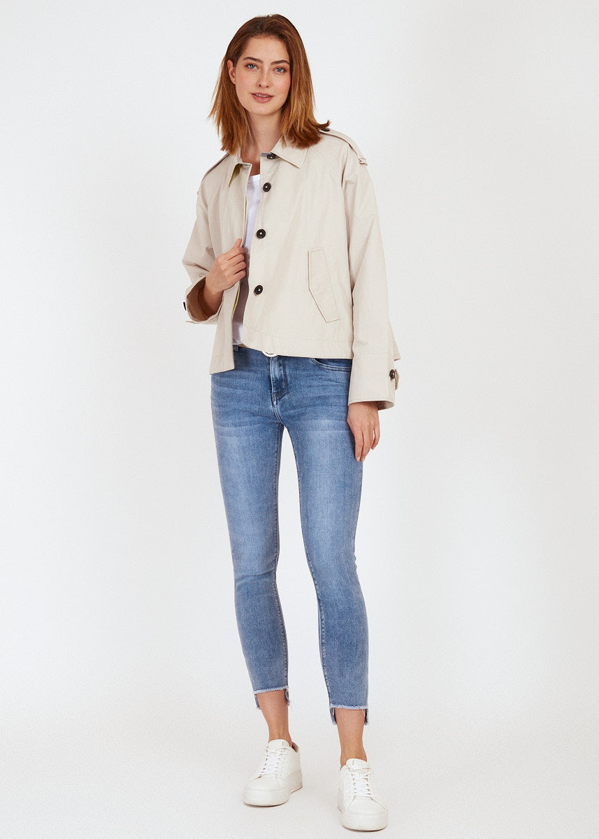 Entdecke noch heute den frischen Hauch des Frühlings mit meiner Beige-Kurzjacke und lasse dich von meinem unwiderstehlichen Charme verzaubern.