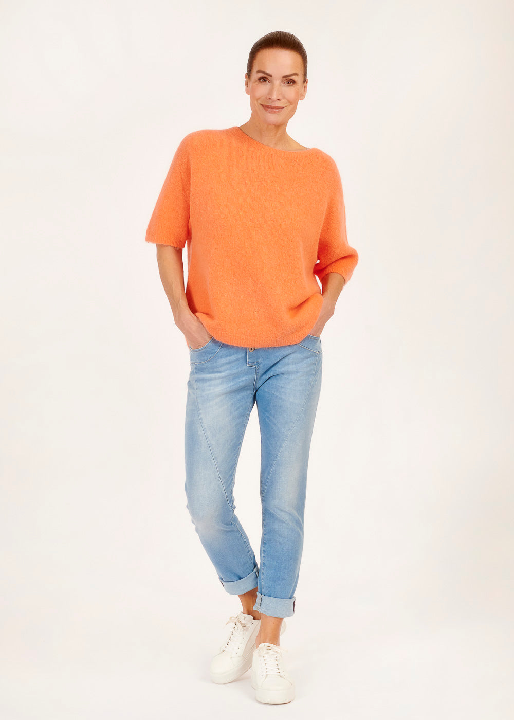 Das Model trägt bei einer Körpergröße von 179 cm die Konfektionsgröße S.