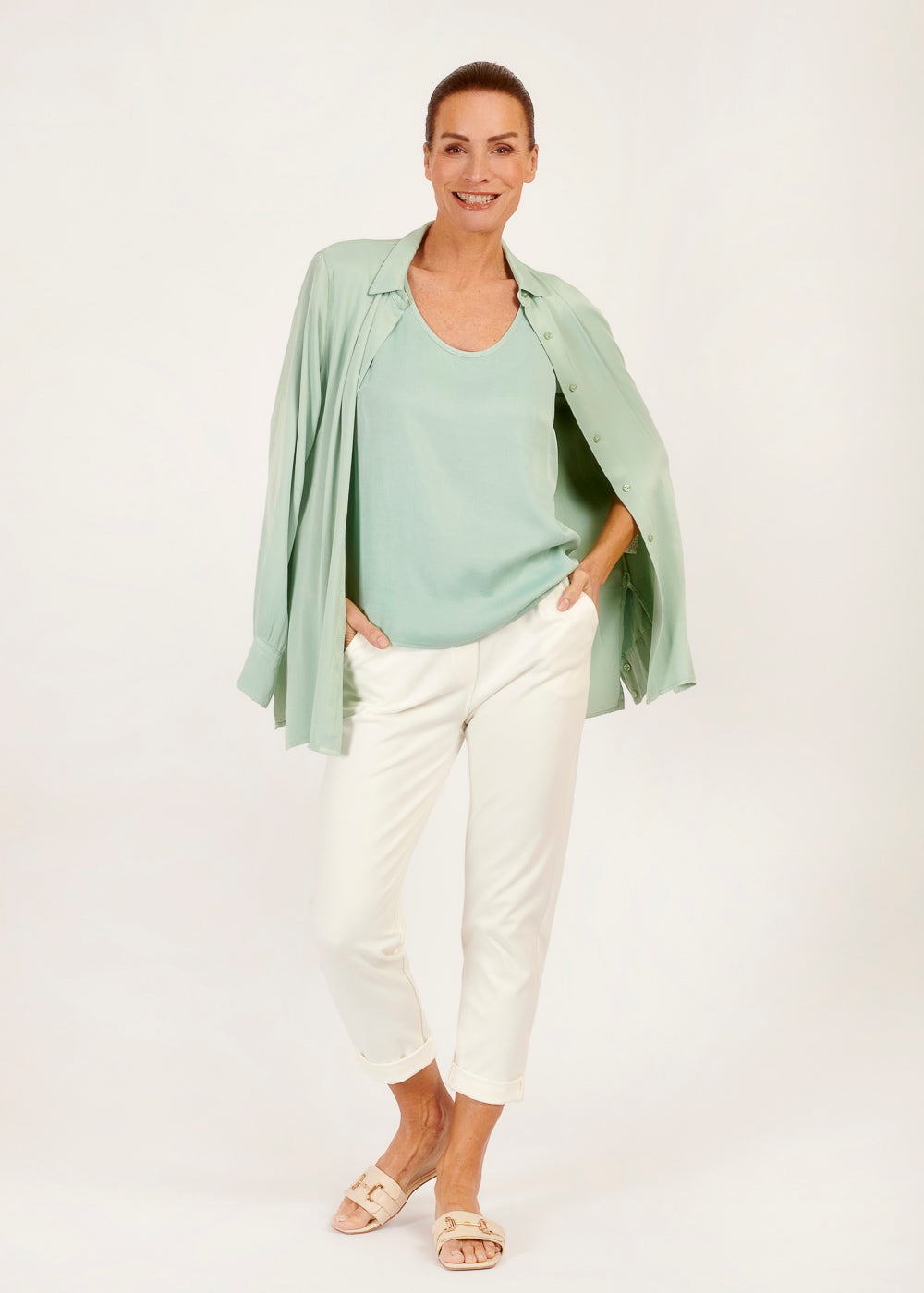 Entdecke das perfekte Satin-Top für deinen Kleiderschrank! In einem wunderschönen Grün gehalten, bietet dieses Top nicht nur ein elegantes Aussehen, sondern auch vielseitige Einsatzmöglichkeiten.