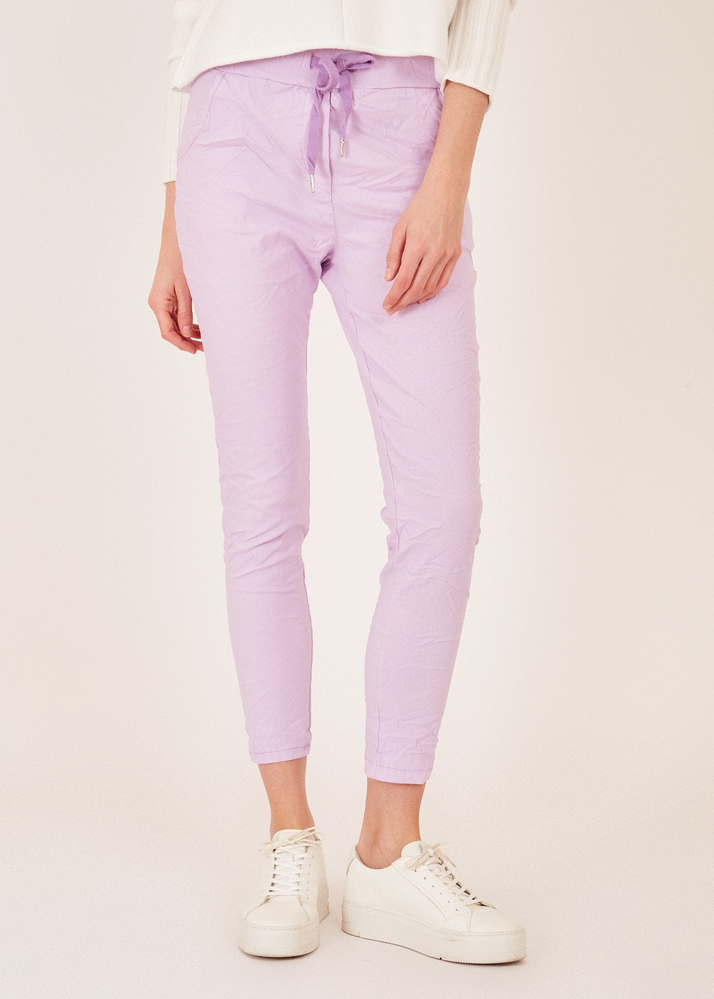 Unser Bestseller! Hose aus Viskose und Elasthan. Dadurch sitzt sie super bequem und lässt sich prima zu Allem kombinieren. Gummizug im Bund, Tunnelzug mit Band und seitliche Eingriffstaschen.