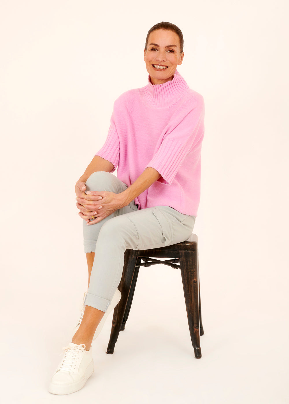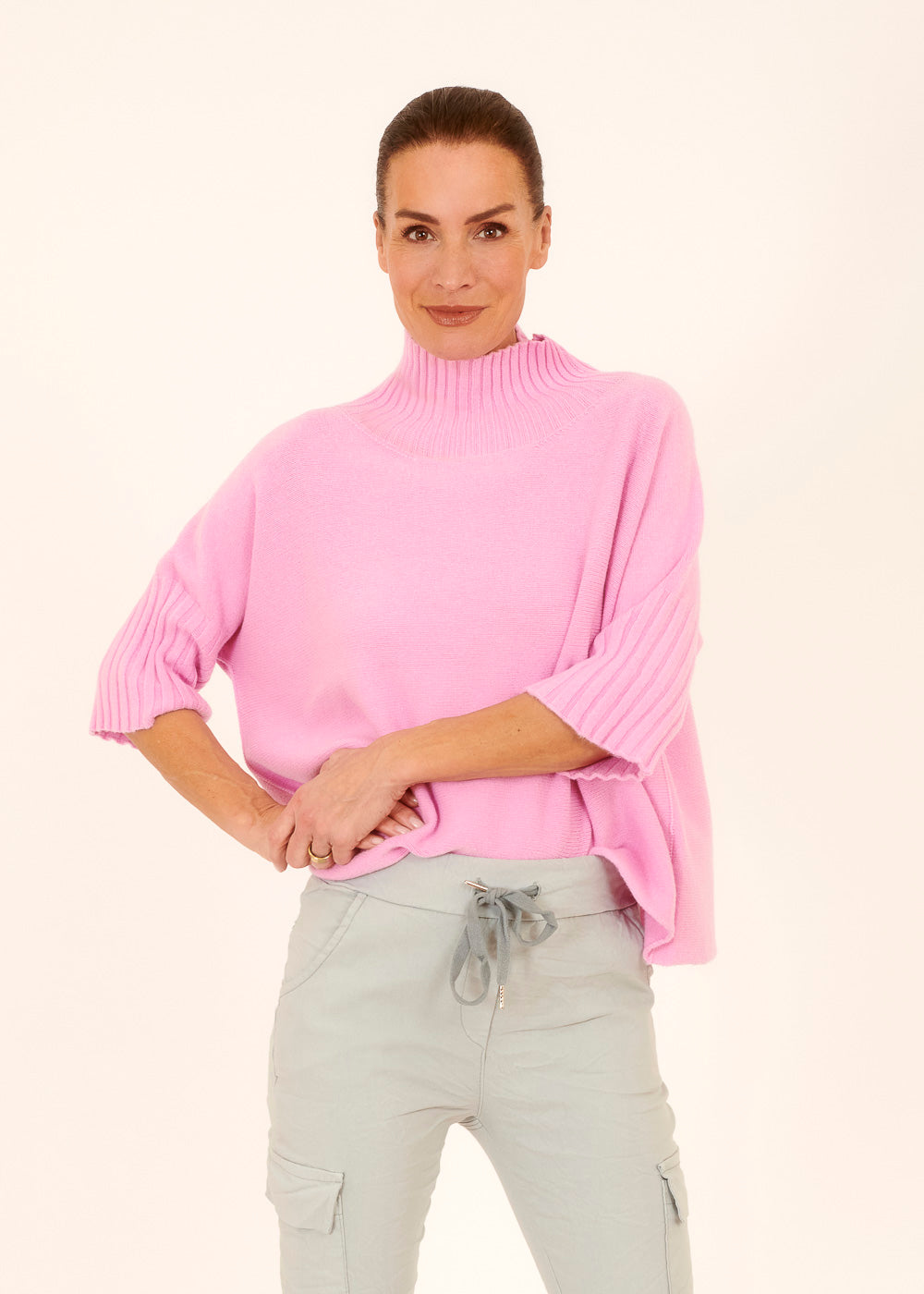 Unser kuschelig, lässige Pullover mit Turtleneck bietet das Beste aus beiden Welten - unschlagbare Gemütlichkeit und unverwechselbaren Stil. Das angenehme Material ist weich auf deiner Haut und der edle Rosa Ton lässt sich wunderbar stylen.  Egal, ob du im Büro, bei einem Treffen mit Freunden oder an einem gemütlichen Abend zu Hause tragen - dieser Pullover ist immer die richtige Wahl.