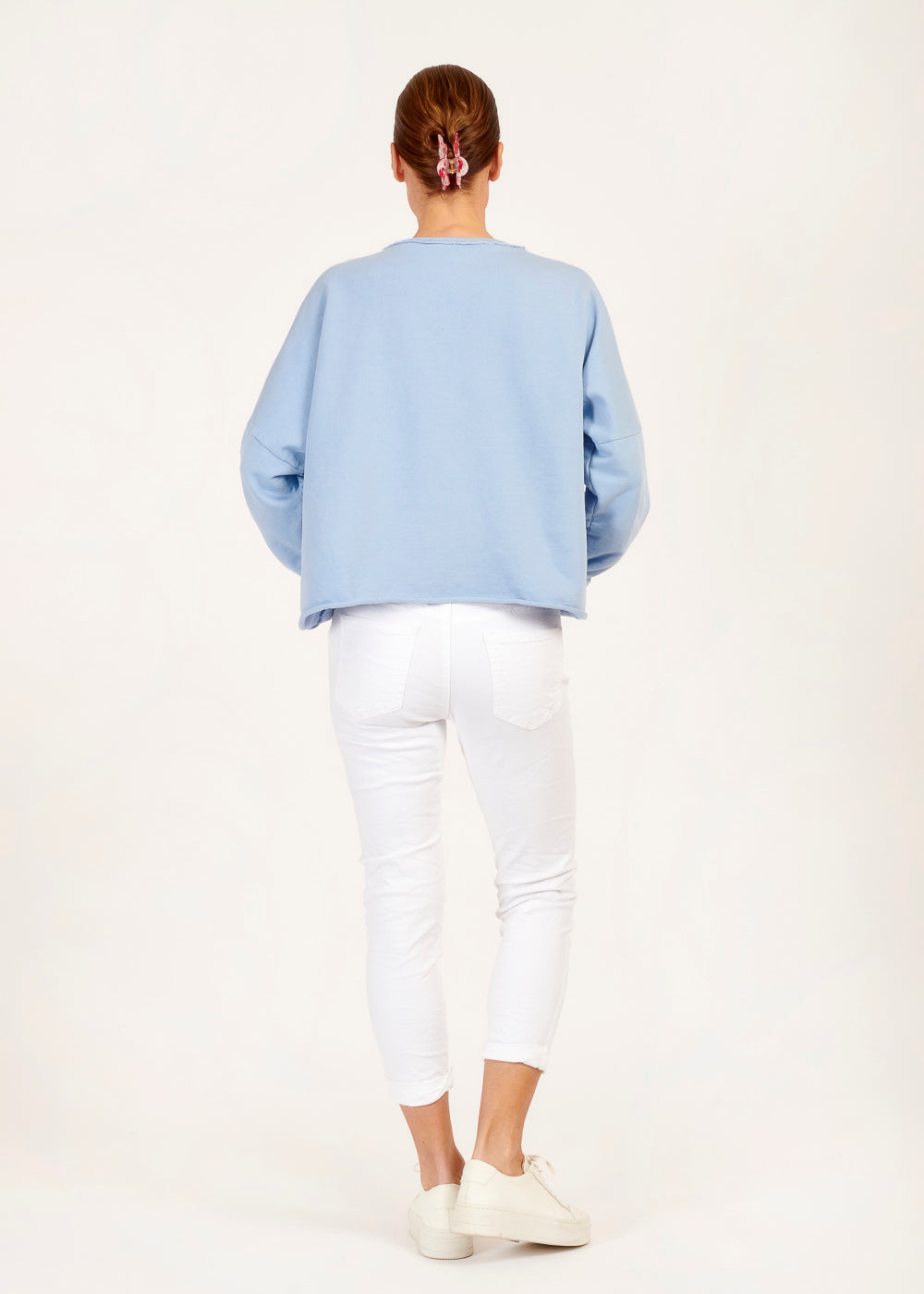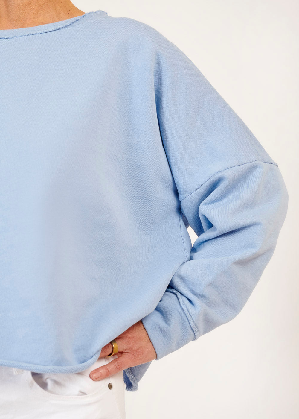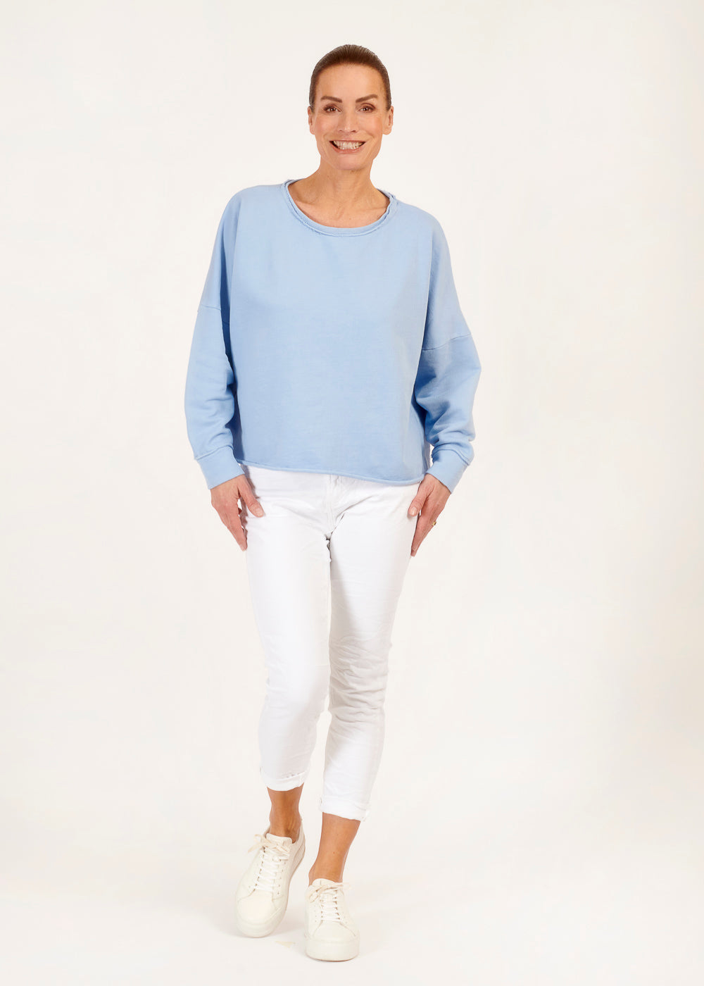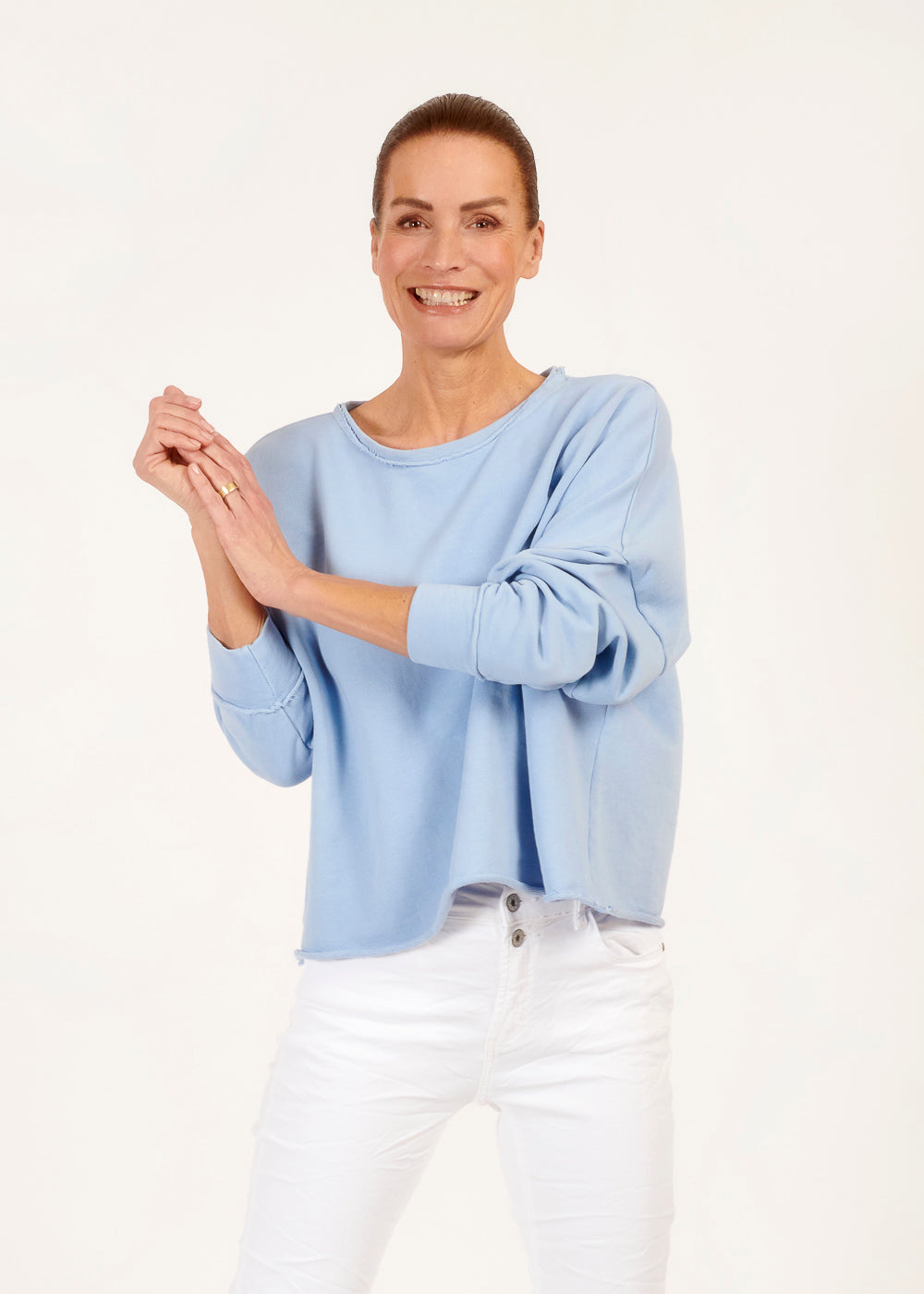 Die gewaschene blaue Farbe verleiht diesem Sweatshirt eine coole Vintage-Ästhetik und macht es zum perfekten Begleiter für deine lässigen Outfits. Egal, ob du es zu deiner Lieblingsjeans für einen entspannten Alltagslook trägst oder zu einer schicken Hose für einen lässigen Kontrast kombinierst, dieses Sweatshirt wird definitiv alle Blicke auf sich ziehen.