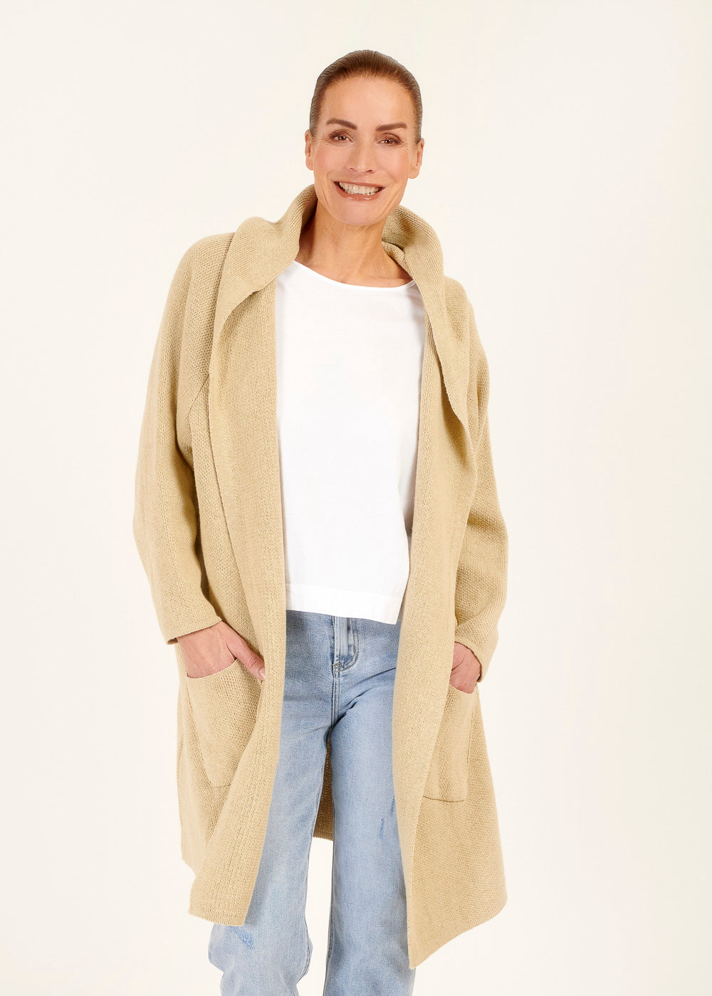 Der neutrale Beigeton macht diese Jacke vielseitig kombinierbar. Trage sie über einem simplen T-Shirt und Jeans für einen relaxten Look oder über einem Kleid für eine lässig-elegante Ausstrahlung.