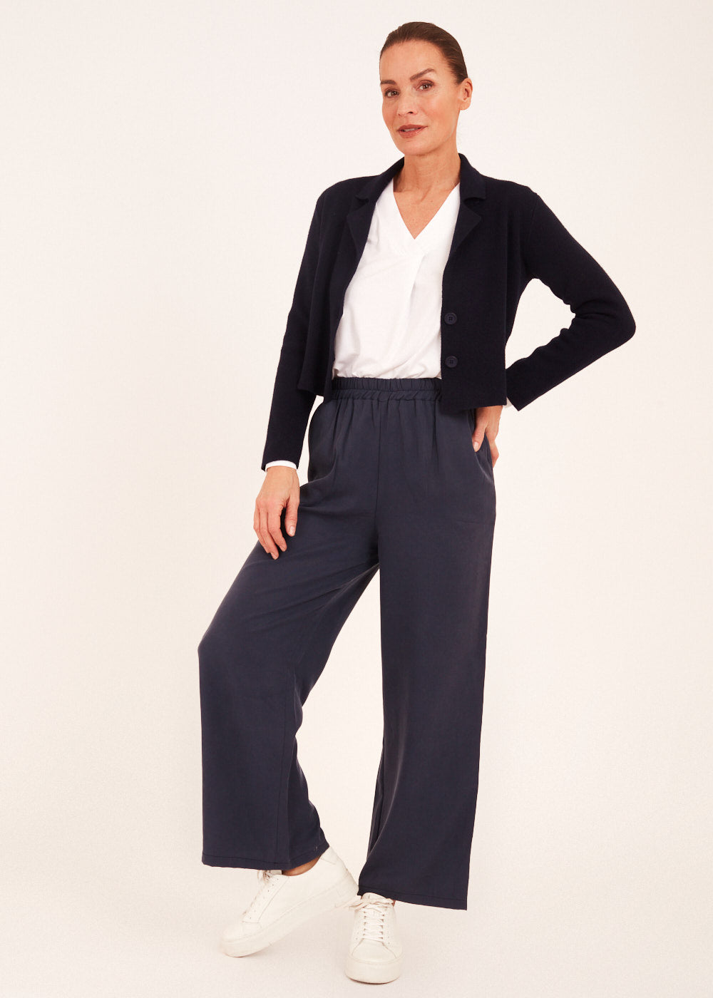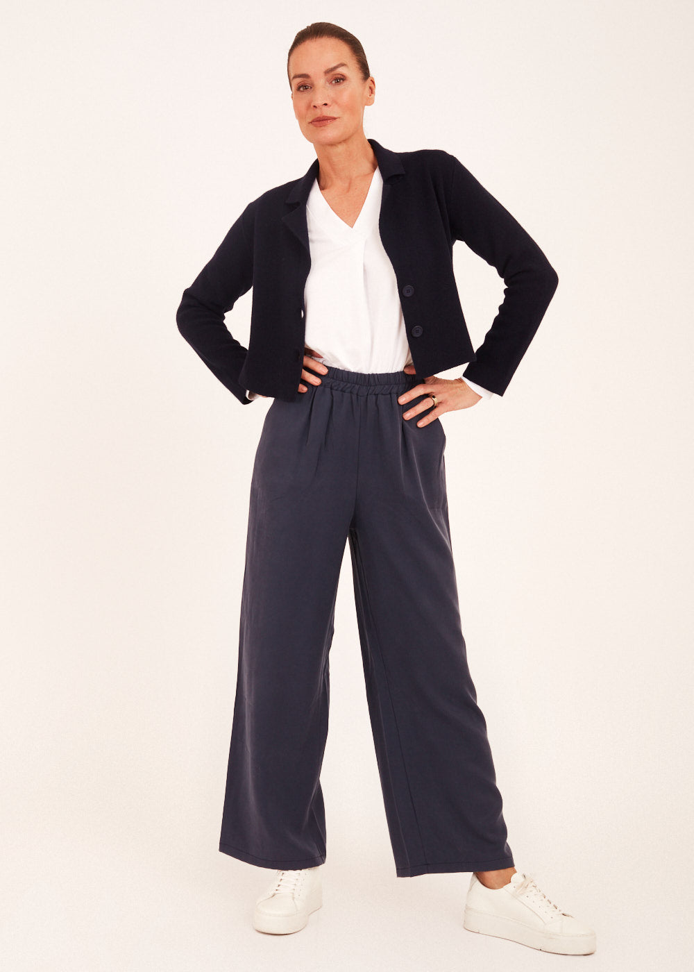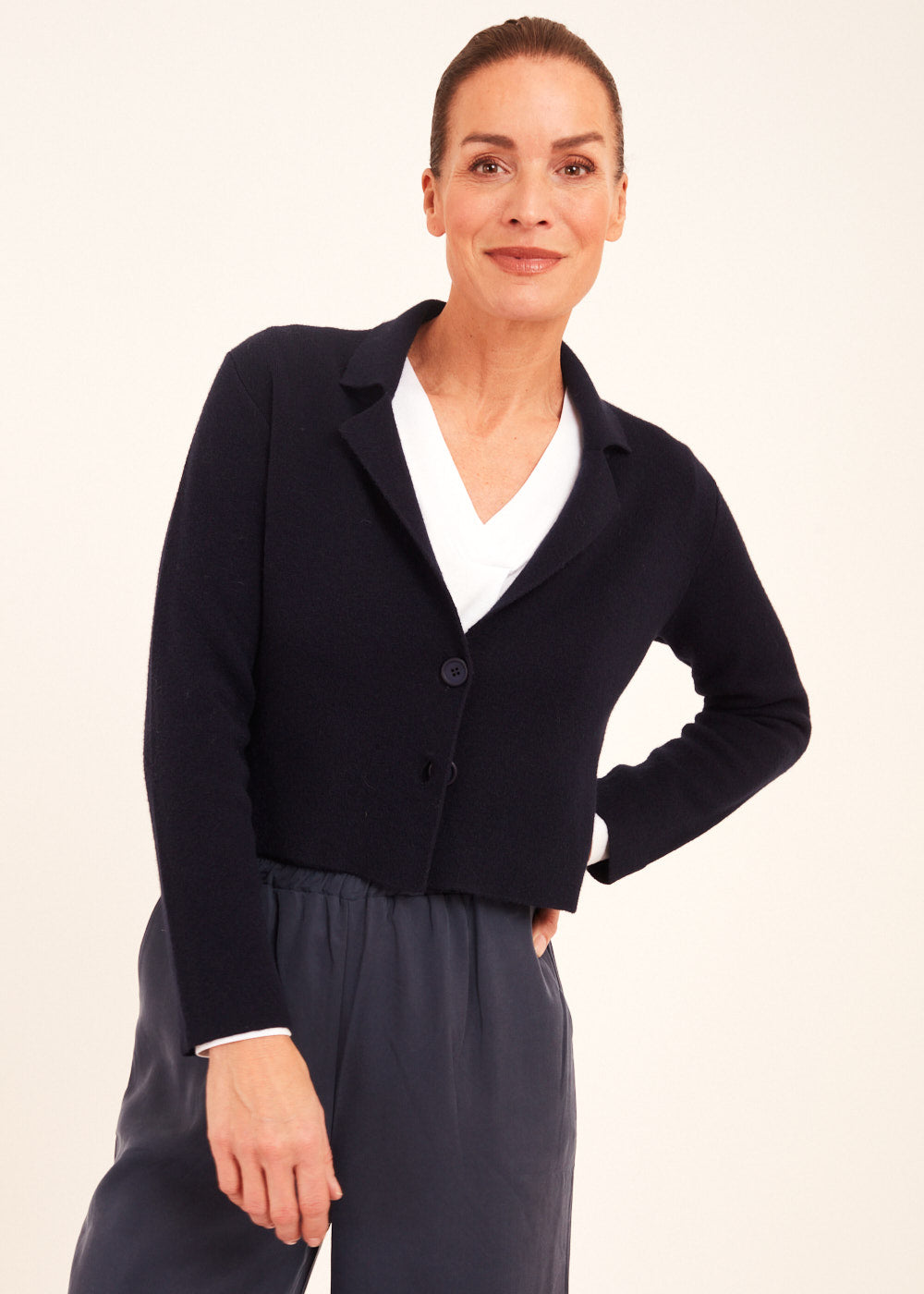 Setze ein Statement mit unserem kurz geschnittenen Blazer in lebhaftem Blau. Der legere Stoff verleiht diesem stylischen Piece eine entspannte Eleganz. Perfekt für einen schicken Look mit minimalem Aufwand. Machen Sie mit diesem kurzen, blauen Blazer einen modischen Akzent – ein Must-Have für jede Gelegenheit.