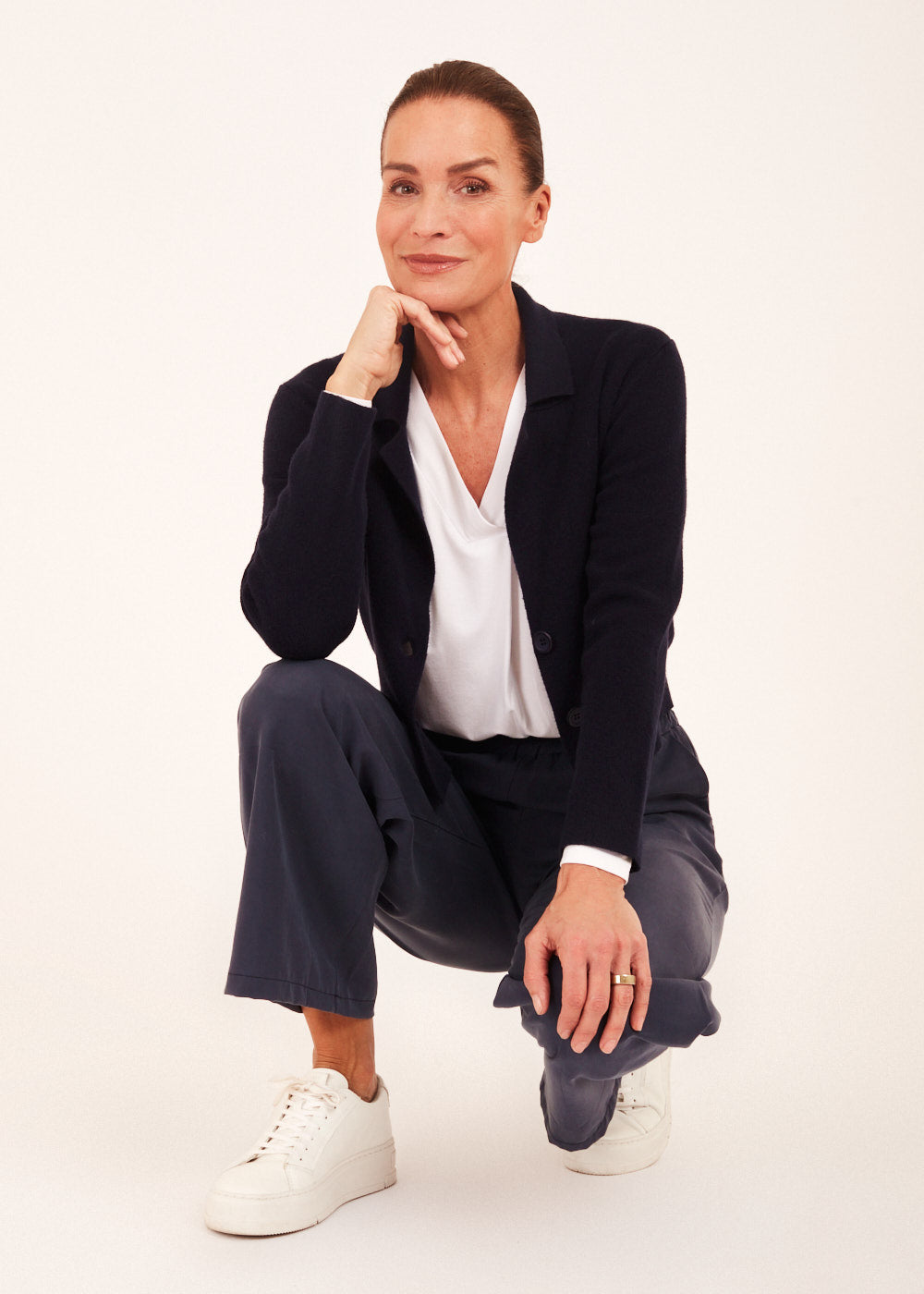 Das Model trägt bei einer Körpergröße von 179 cm die Konfektionsgröße S.