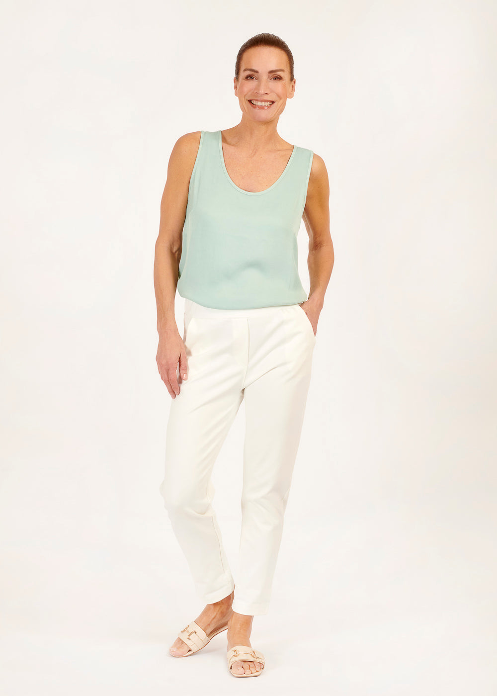 Diese Hose bringt einen modernen Look mit komfortablen Eigenschaften in Einklang. Das angesagte Schlupf-Design und die softe Qualität machen es möglich. Der Bund ist hinten mit einem Stretch-Bund ausgestattet, während der weiche Material-Mix um elastische Eigenschaften erweitert wird. Kombiniere diese Hose gerne mit einem Shirt.