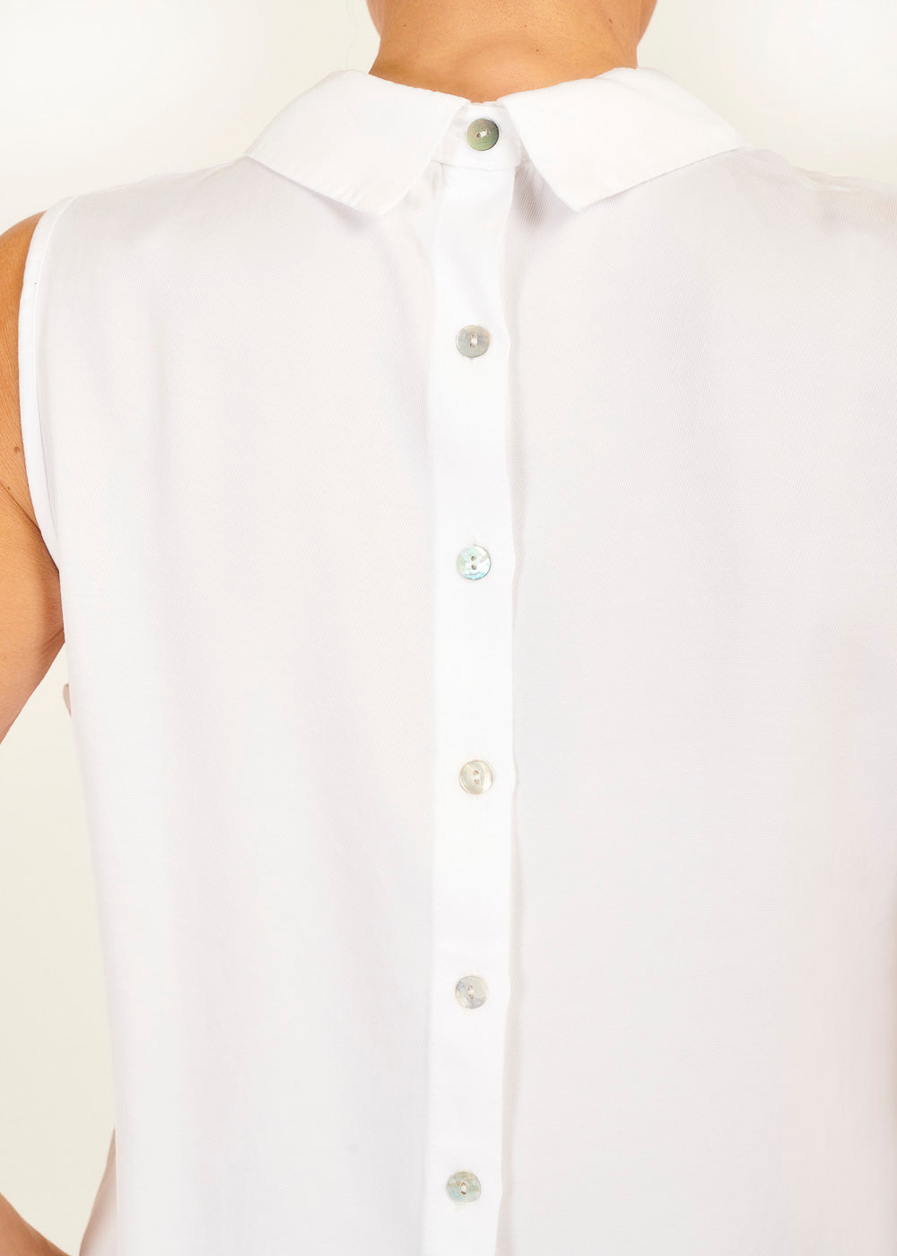 Das besondere Highlight dieser Bluse ist die Knopfleiste auf der Rückseite, die nicht nur für eine originelle Optik sorgt, sondern auch eine subtile Raffinesse verleiht.