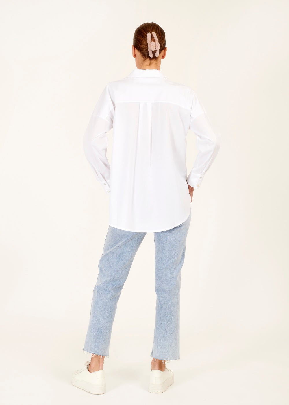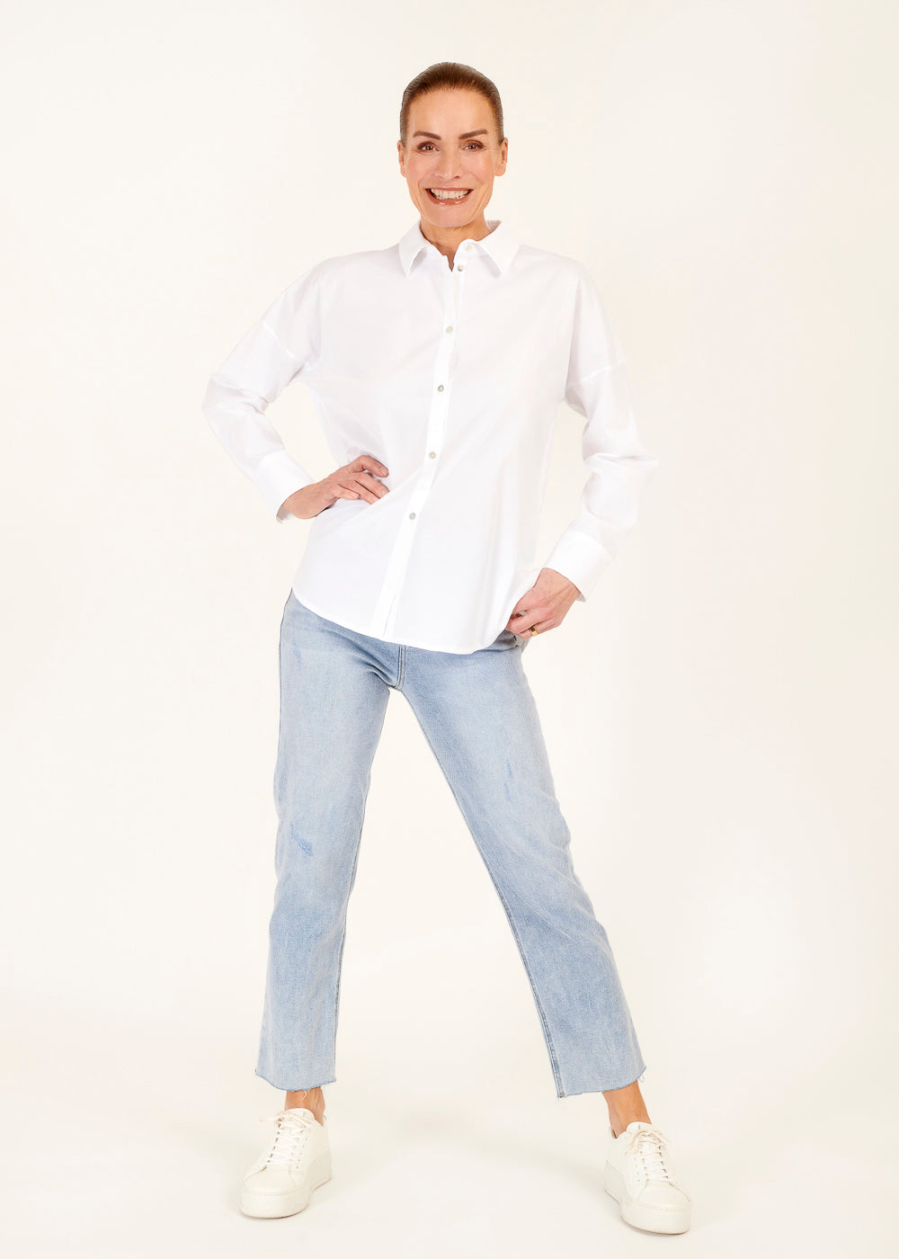 Für einen lässigen Look mit einem Hauch von Raffinesse: Unser weißes Hemd mit Knopfleiste und klassischem Hemdkragen.