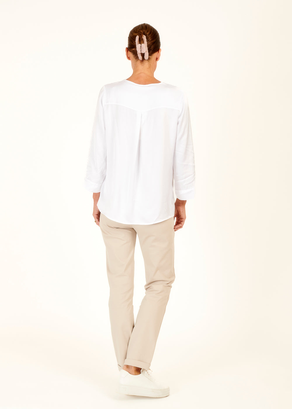 Das Model trägt bei einer Körpergröße von 179 cm die Konfektionsgröße S.