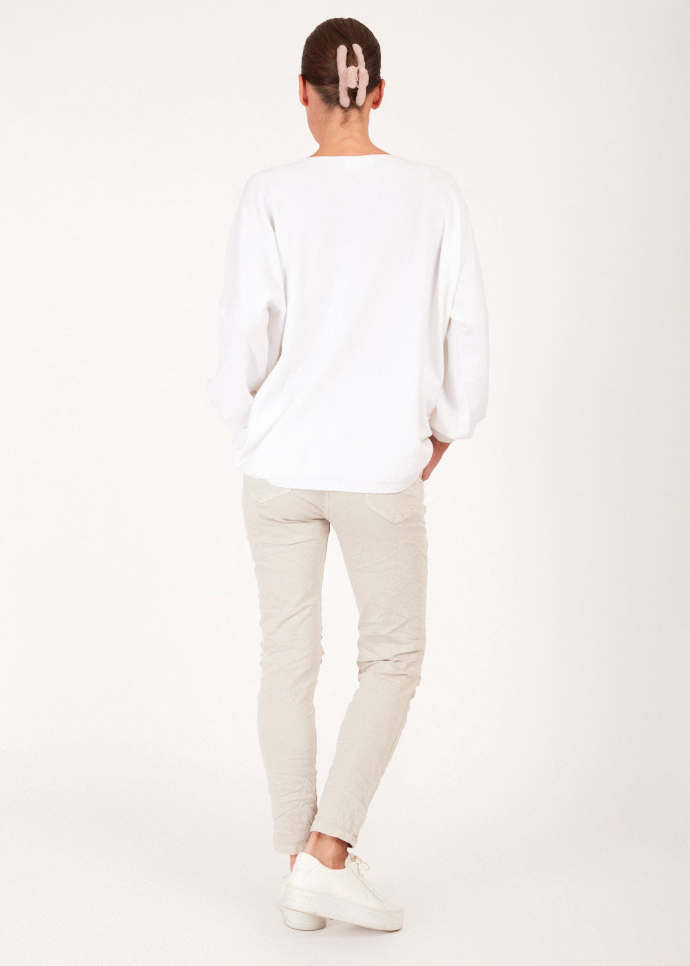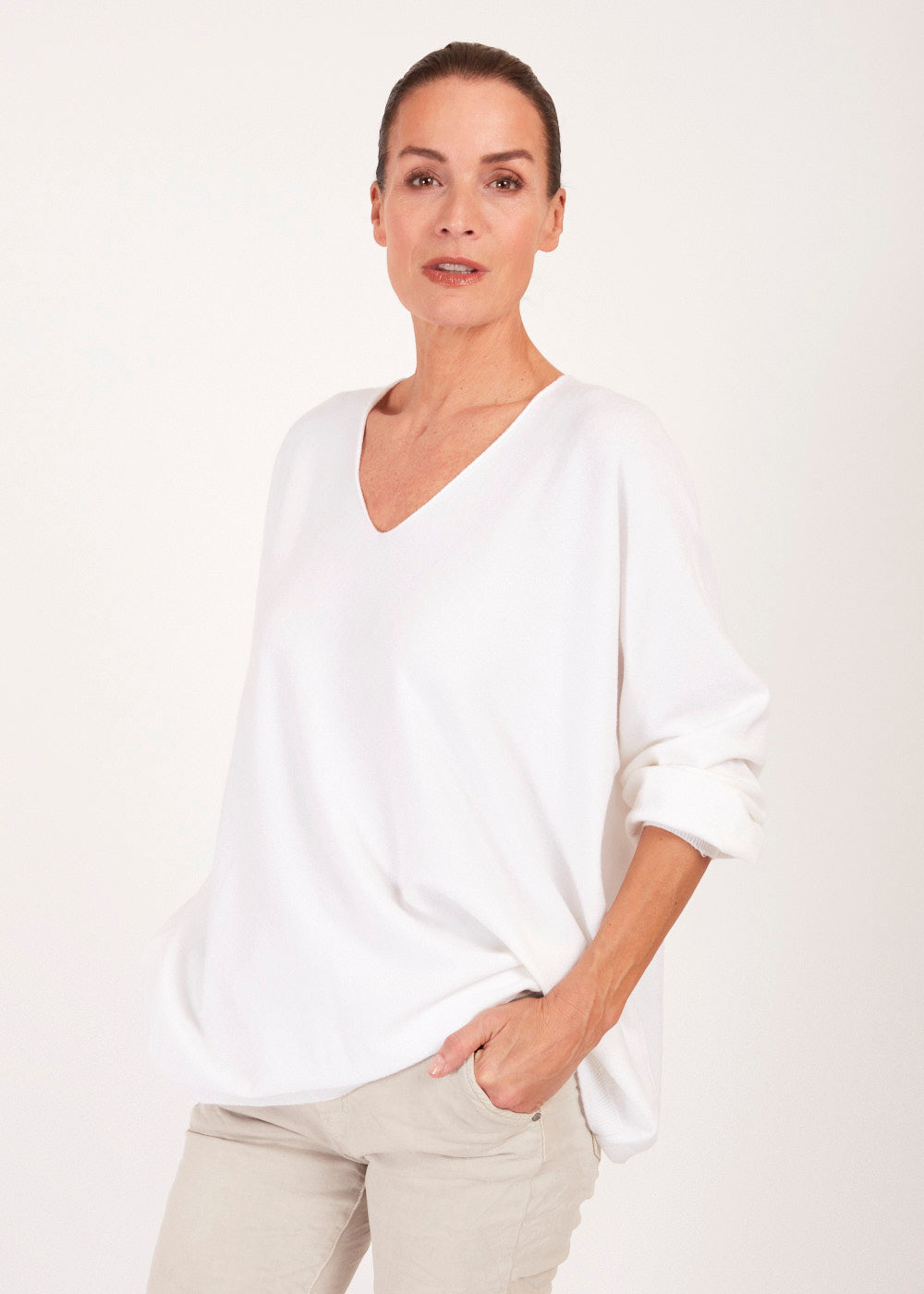 Entdecke unseren Oversized-Pullover in bianco-otticio für einen modernen und zeitlosen Look. Er bietet dir Komfort und Stil aus hochwertigen Materialien für jede Gelegenheit.