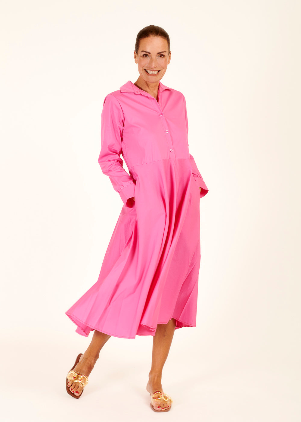Die schmeichelhafte Passform und das fließende Material umschmeicheln sanft deine Figur und sorgen für einen eleganten und femininen Look. Egal, ob du dich für eine formelle Veranstaltung oder einen glamourösen Abend entscheidest, unser Fuchsia-Langkleid wird dich zum strahlenden Mittelpunkt machen.