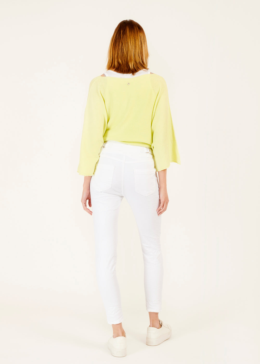 Diese Jogginghose vereint den Komfort einer klassischen Jogginghose mit dem Stil und der Eleganz der Mode. In strahlendem Weiß gehalten, verleiht sie deinem Outfit einen modernen und frischen Touch.