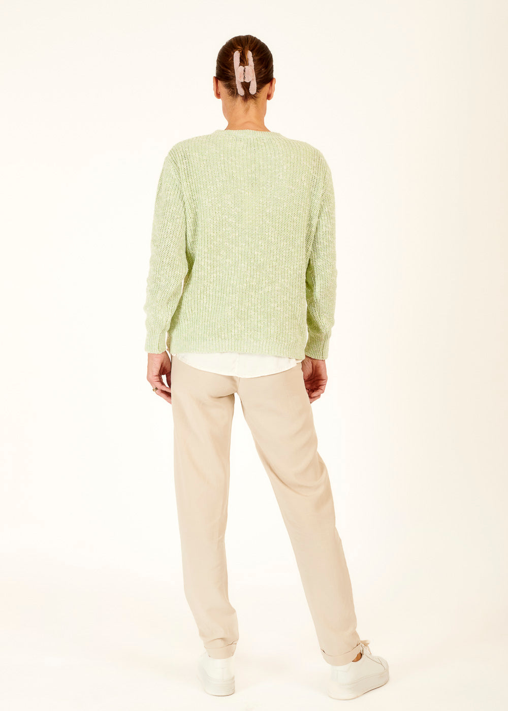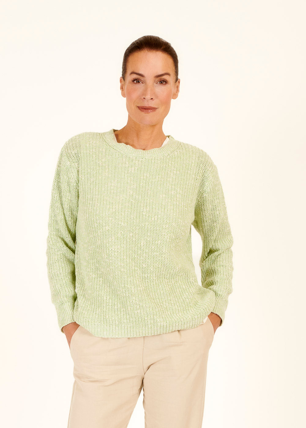 Unsere Mouliné Pullover in der Farbe Verde bieten einen eleganten und zeitlosen Stil für jeden Anlass. Die vielseitige grüne Farbe und das hochwertige Material machen sie zu einem unverzichtbaren Kleidungsstück für jede Jahreszeit.