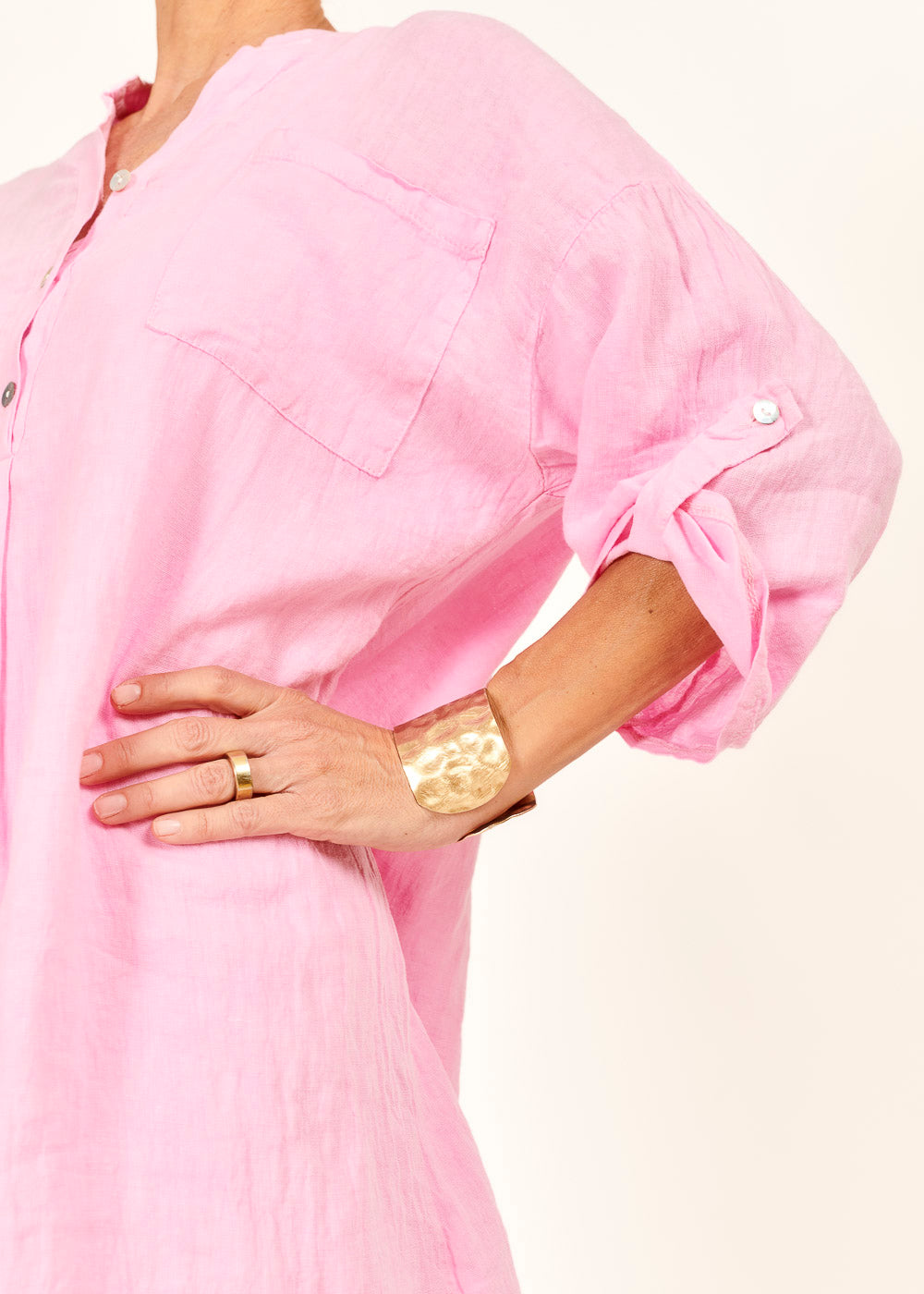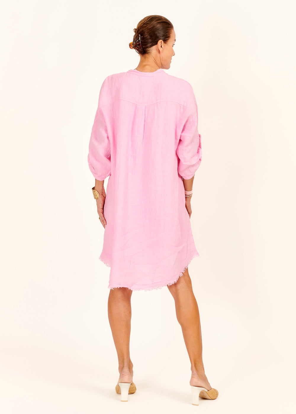 Erlebe den Sommer in unserem bezaubernden Leinendkleid in Barbie mit passendem Unterkleid – luftig, bequem und absolut stilvoll.