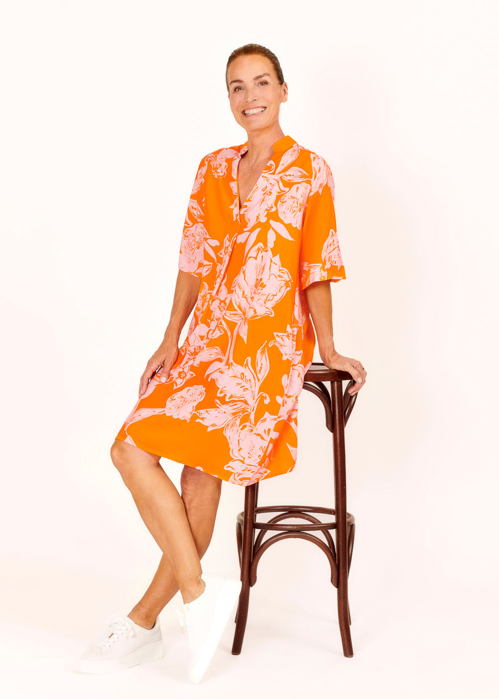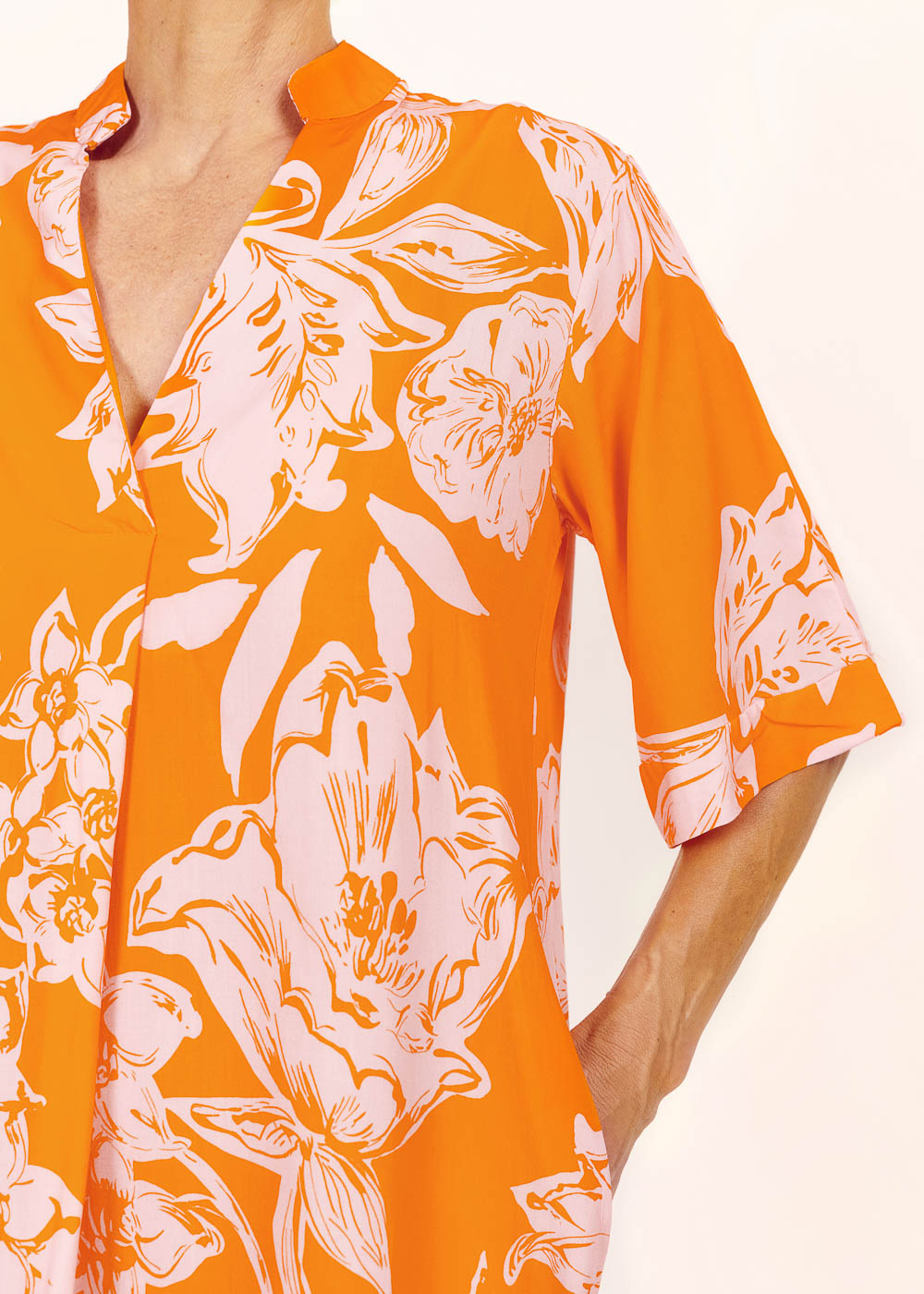 Unser Sommerkleid aus Baumwolle in der Traumfarbe Pesca - Ein Hingucker auf jeder Sommerparty.