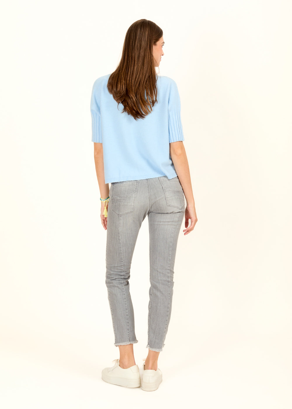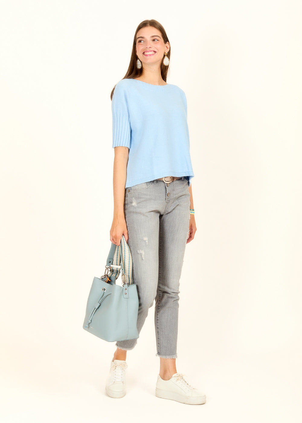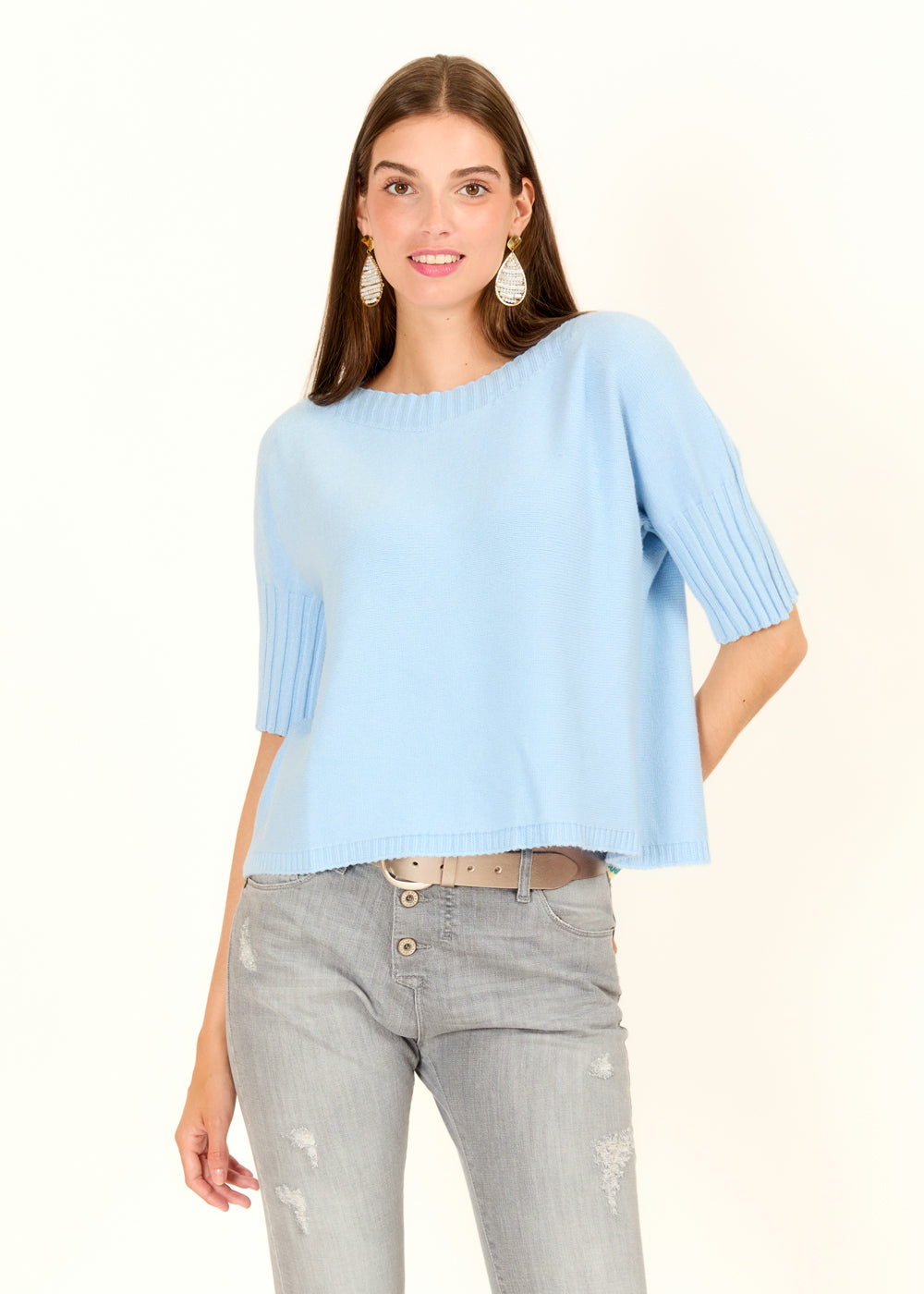 Unser halbarm Pullover in Cielo wird Dich mit seinem weichen Material und der himmlischen Farbe begeistern. Perfekt für jede Jahreszeit, um Deinen Stil zu unterstreichen.