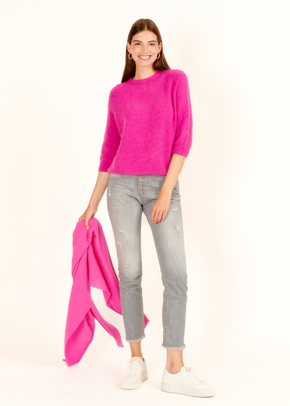 Hol dir den modischen Pulli in frischem fuxia aus kuschelig weichem Babyalpaka und erlebe höchsten Tragekomfort mit einem Hauch von Luxus. Perfekt für einen stylischen Auftritt an kühlen Tagen!