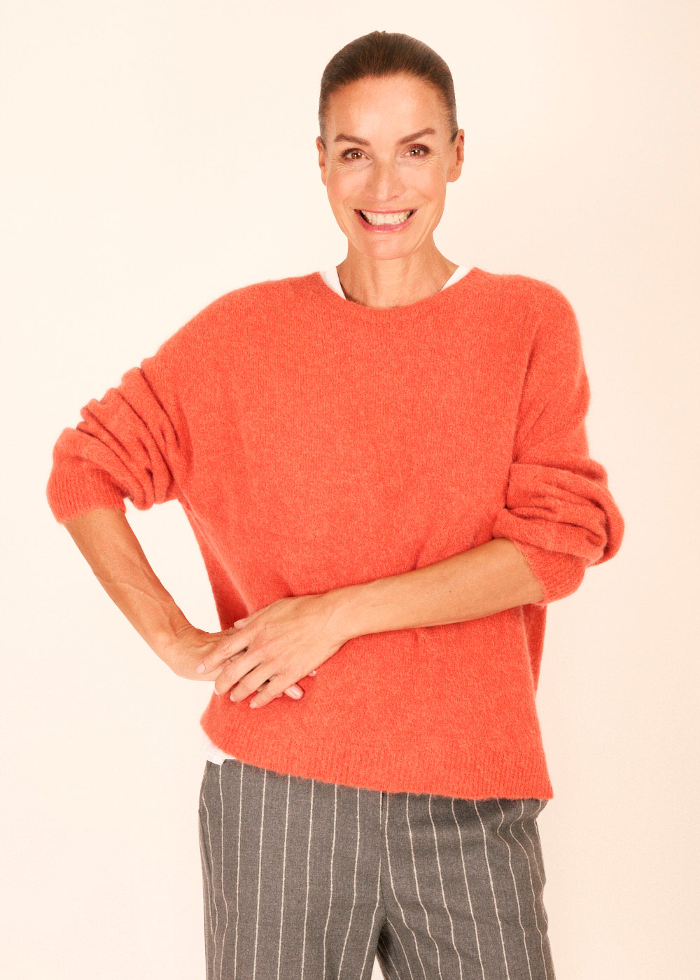 Gemütlicher lässiger Rundhalspullover in einem wunderschöne Bronzo Ton. Der gemütliche Schnitt dieses Pullovers sorgt für eine entspannte und lockere Passform. Er ist kuschlig weich, aus einem Baby Alpaka Mix. Unser Pullover Liebling!