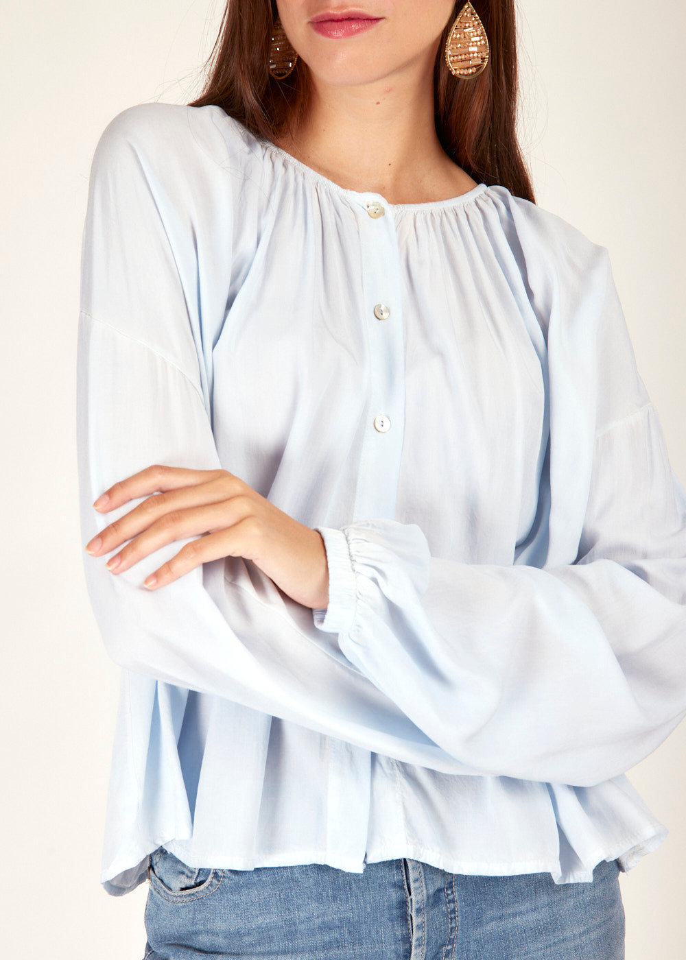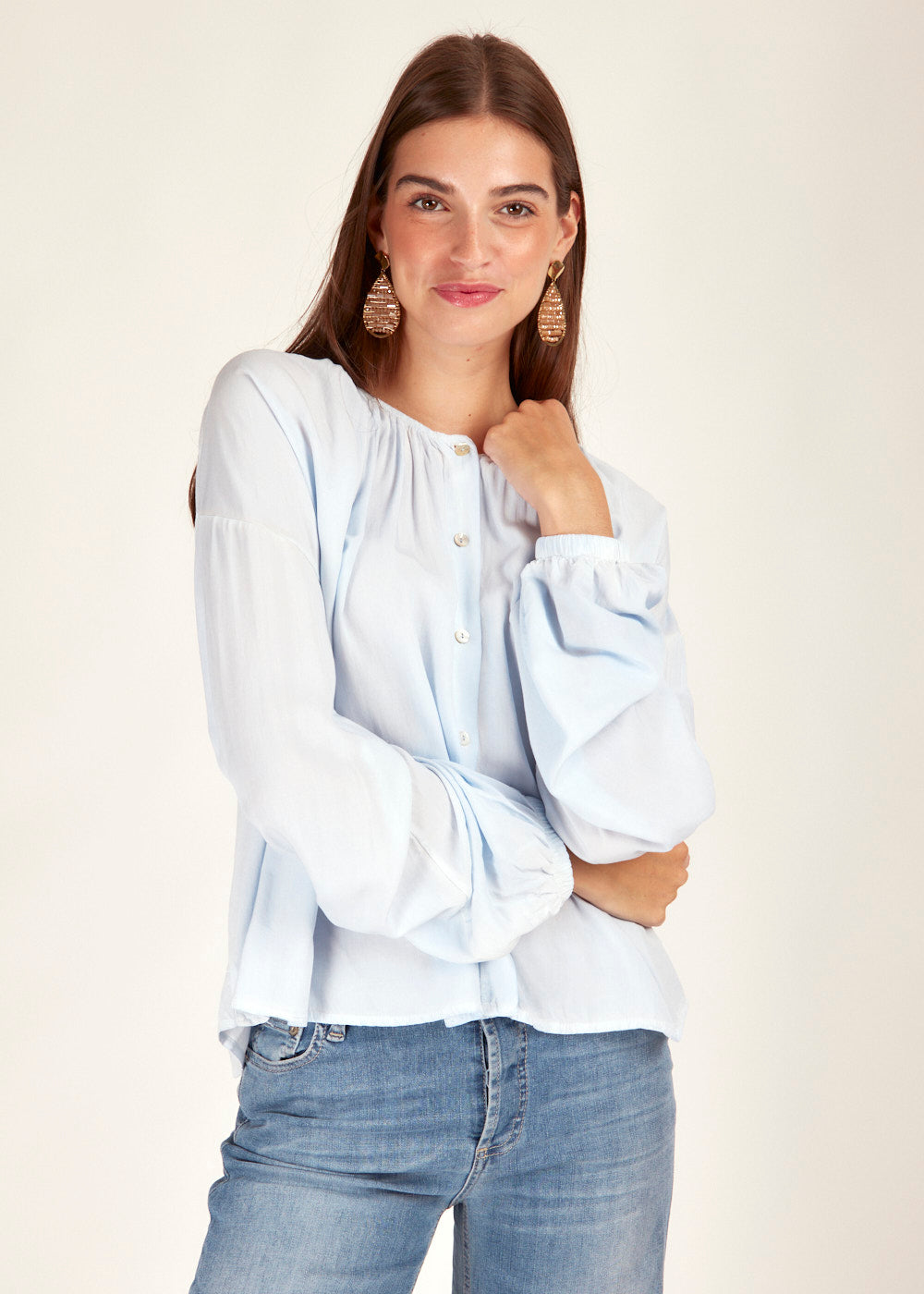 Diese Tunikabluse in sanftem Blau umhüllt Dich mit einer Leichtigkeit, die Deinen Alltag strahlen lässt. Perfekt kombiniert für jeden Anlass, sorgt sie für ein stilvolles und angenehmes Tragegefühl.