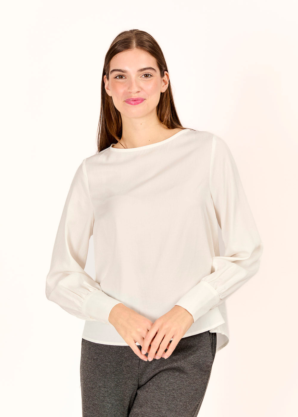 Diese weiße Bluse mit Knöpfen auf der Rückseite verleiht deinem Look eine elegante und zugleich moderne Note. Perfekt für besondere Anlässe oder stilvolle Alltagskombinationen!
