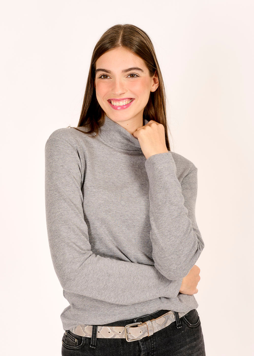Der Rollkragenpullover in Grigio ist dein perfekter Begleiter für kühlere Tage – gemütlich, stylisch und vielseitig kombinierbar. Genieße den Tragekomfort und das elegante Design im edlen Grau.
