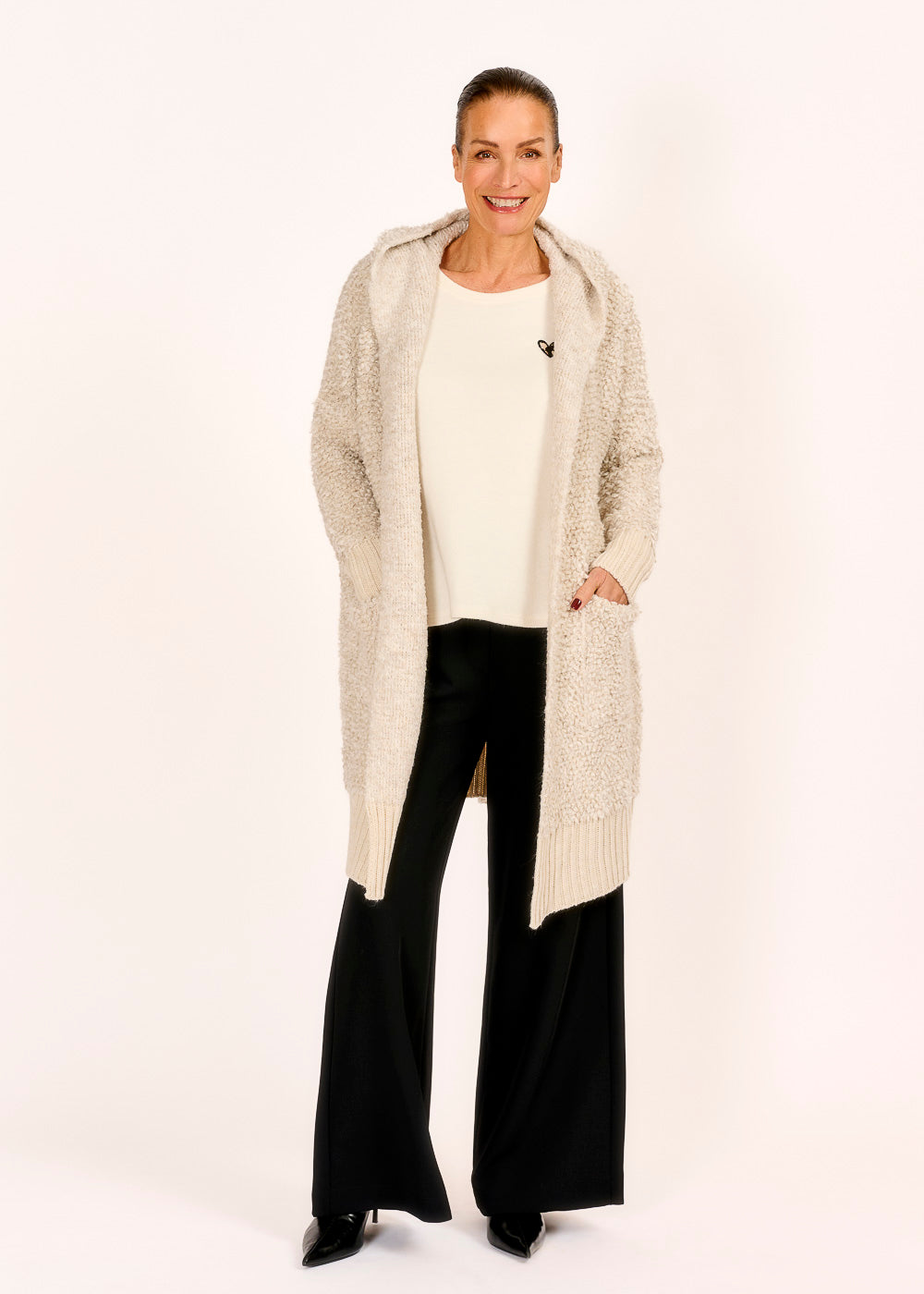 Entdecke deinen neuen Lieblingslook mit diesem modischen Strickmantel in Beige – perfekt für stilvolle, gemütliche Outfits. Die weiche Qualität bietet dir angenehmen Tragekomfort und vielseitige Kombinationsmöglichkeiten.