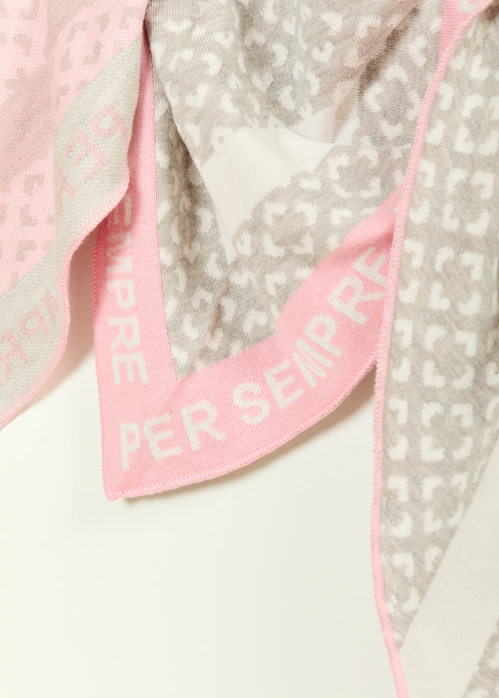 Entdecke das wunderschöne Dreieckstuch in Grau und Rosa, das mit einem zarten "per sempre" Schriftzug (italienisch "für immer") am Rand verziert ist. Dieses stilvolle Accessoire wird Dich warm halten und jedem Outfit eine besondere Note verleihen.