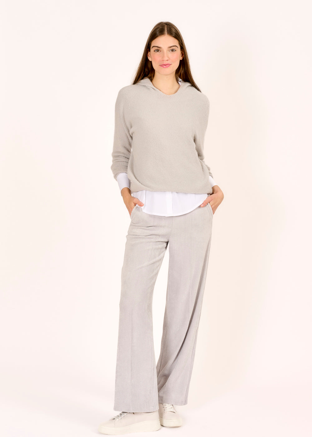 Diese weit geschnittene Cordhose in edlem Grigio vereint Retro-Charme mit modernem Komfort. Dank ihres stretchigen Materials passt sie sich perfekt an und sorgt den ganzen Tag für ein angenehmes Tragegefühl. Ob lässig mit Sneakern oder elegant mit Stiefeletten – dieses Must-have setzt stilvolle Akzente in jeder Garderobe.