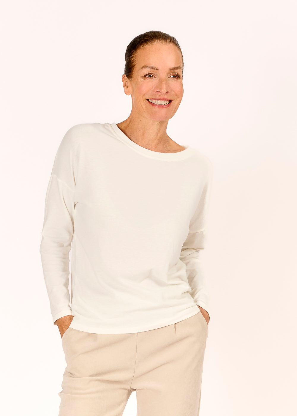Entdecke unser softes Shirt in strahlendem Bianco Ottico – ein wahrer Allrounder, der sich angenehm leicht auf deiner Haut anfühlt. Perfekt für jeden Anlass, ob lässig oder elegant!